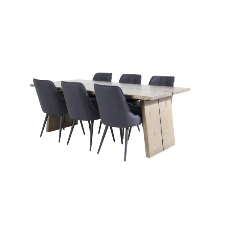 Trend-sikkert og komfortabelt Spisebordssæt, der har plads til alle! Her er vores udvidelige spisebord Logger kombineret med vores siddevenlige spisebordsstole i Velvet-serien. Lad det rustikke trælook og den tidløse farvekombination pryde dit hjem!