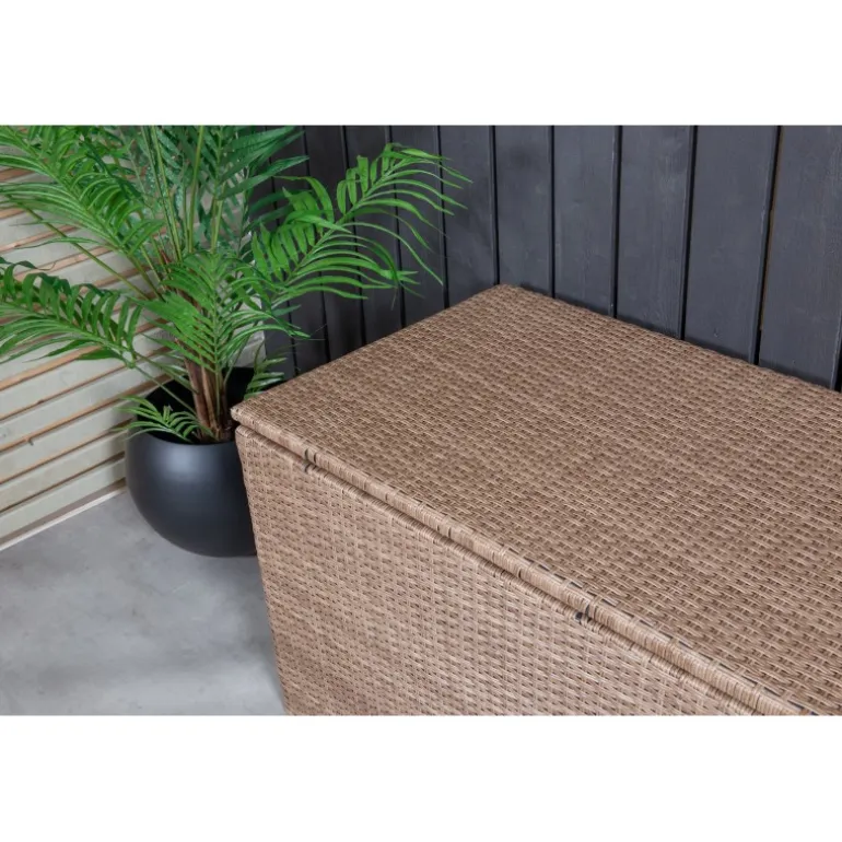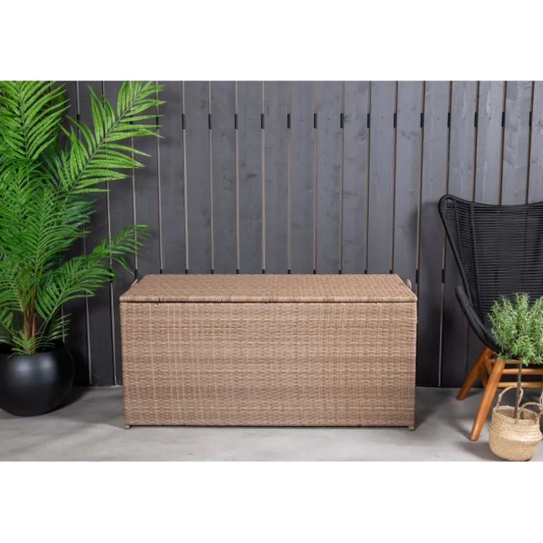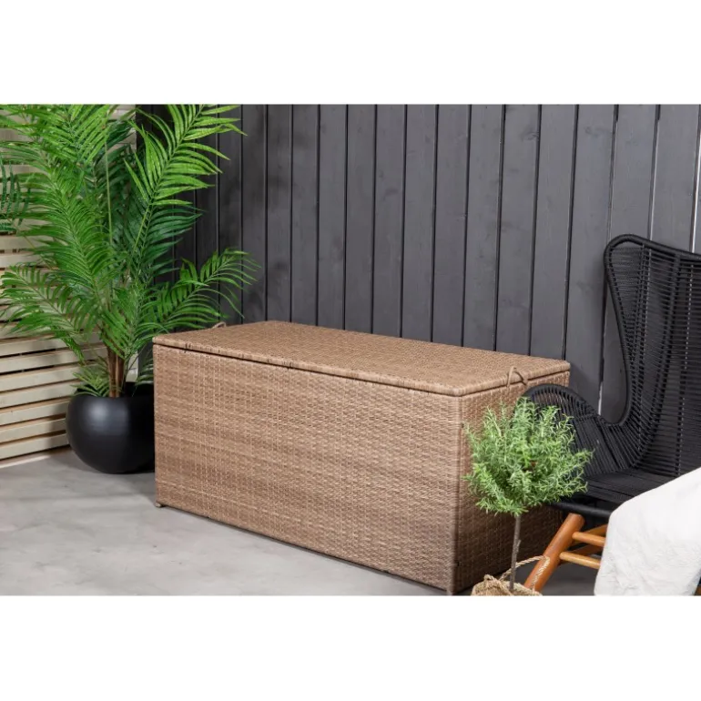 Opbevar dine hynder til udendørsmøbler på en pæn og praktisk måde med hjælp fra London Hyndeboks i naturlig farve! Med en rummelig hyndeboks kan du forlænge hyndernes levetid – en smart opbevaringsløsning, der fungerer lige så godt i forteltet som på altanen eller balkonen. Konstrite er et plastmateriale, der er perfekt til vores skandinaviske klima. Materialet er UV-resistent og kan modstå vejr og vind. At det er UV-resistent betyder, at møblerne ikke falmer, men vi anbefaler altid at opbevare møblerne under et møbelbeskyttelse eller på anden måde tørt og køligt for at forlænge levetiden.