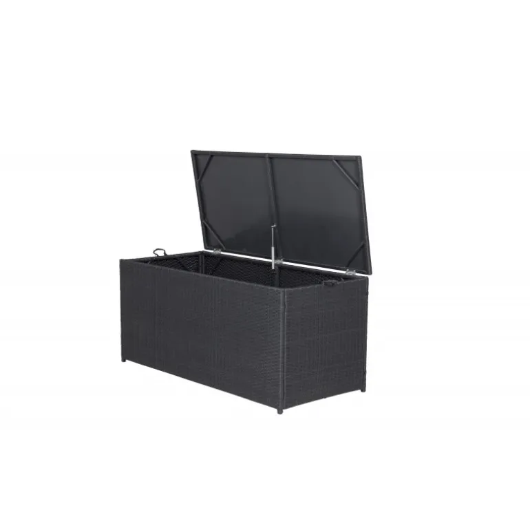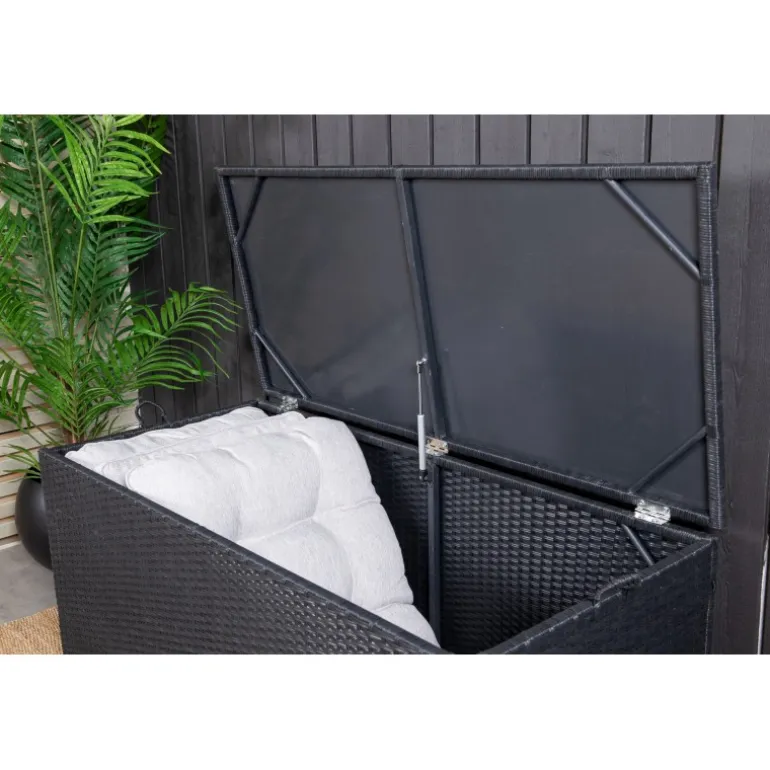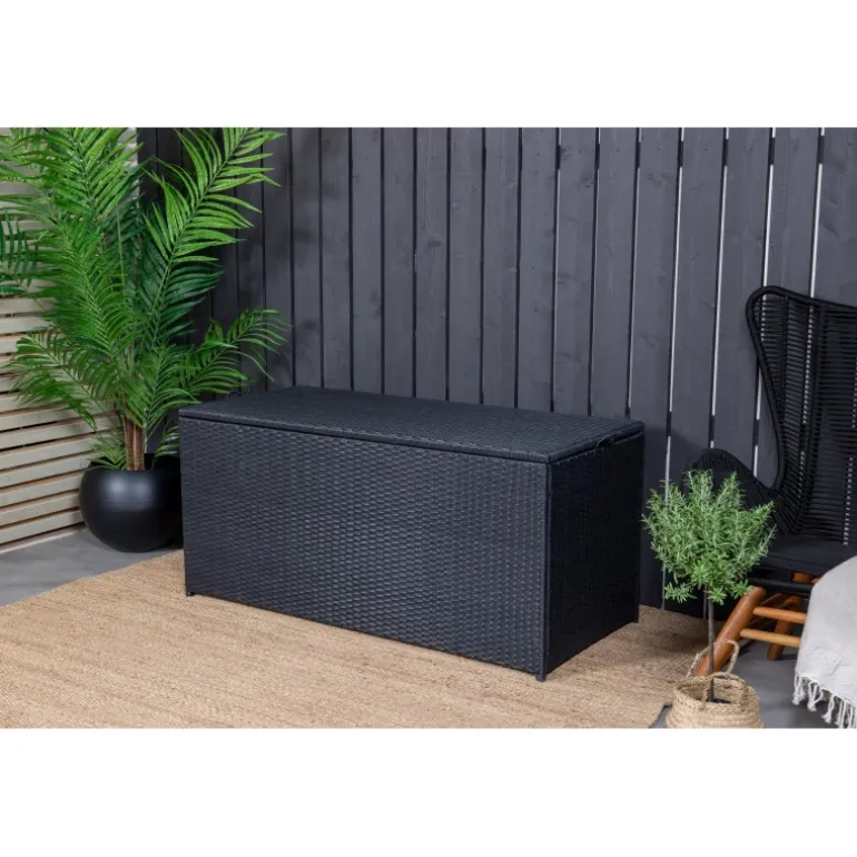 Opbevar dine hynder til udendørsmøbler på en pæn og praktisk måde med London Hyndeboks i sort farve! Med en rummelig hyndeboks kan du forlænge hyndernes levetid – en smart opbevaringsløsning, der fungerer lige så godt under markisen som på altanen eller balkonen. Konstrite er et plastmateriale, der er perfekt til vores skandinaviske klima. Materialet er UV-resistent og kan tåle vejr og vind. Selvom materialet er UV-resistent og dermed ikke falmer, anbefaler vi altid at opbevare møblerne under et møbelovertræk eller på et tørt og køligt sted for at forlænge levetiden.