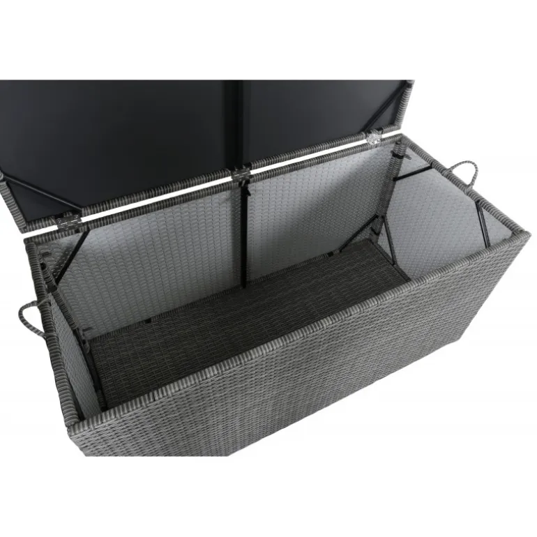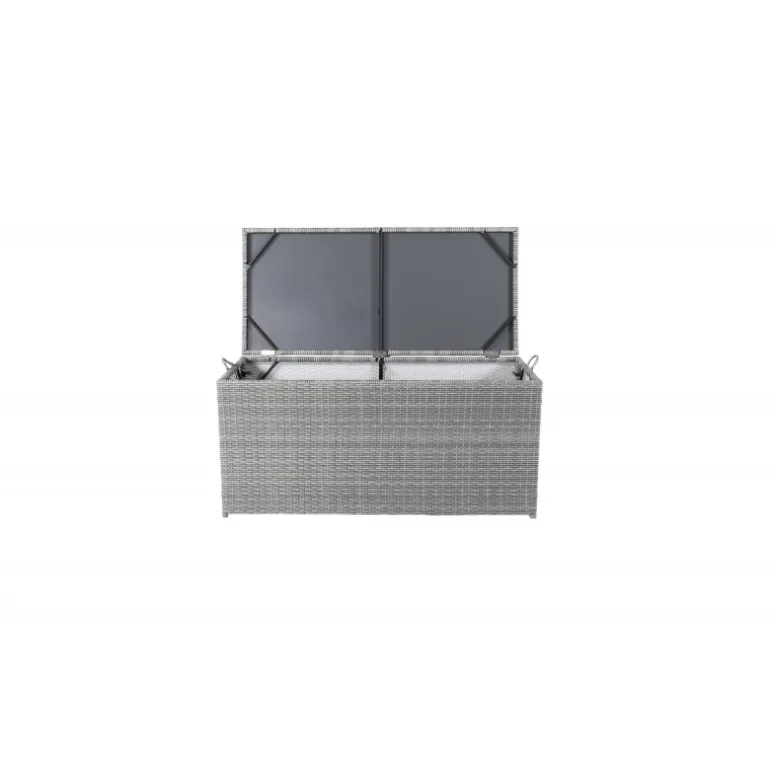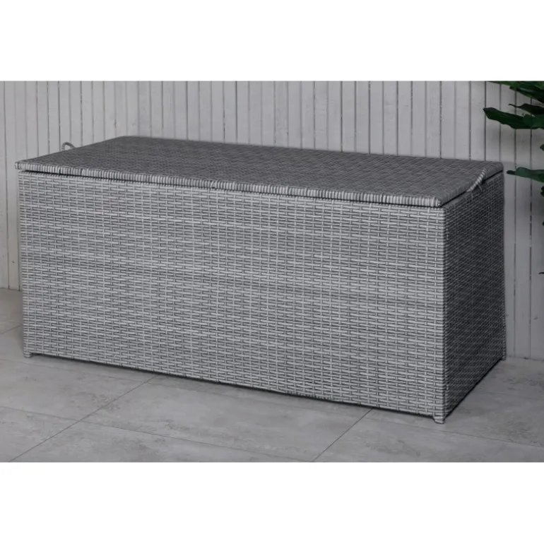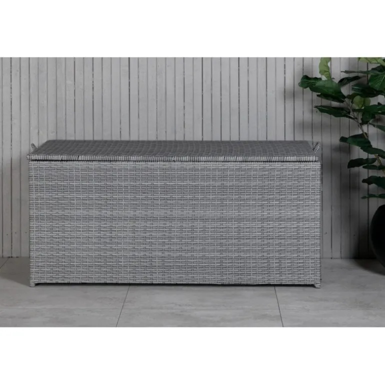 Opbevar dine hynder til udendørs møbler på en pæn og praktisk måde med London Opbevaringsboks! Med en rummelig grå opbevaringsboks kan du forlænge levetiden på dine hynder – en smart opbevaringsløsning, der fungerer lige så godt på terrassen som på altanen. Konstrit er et plastmateriale, der er perfekt til vores skandinaviske klima. Materialet er UV-resistent og kan modstå vejr og vind. Selvom det er UV-resistent og ikke falmer, anbefaler vi altid at opbevare møblerne under et møbelovertræk eller et andet tørt og køligt sted for at forlænge levetiden.