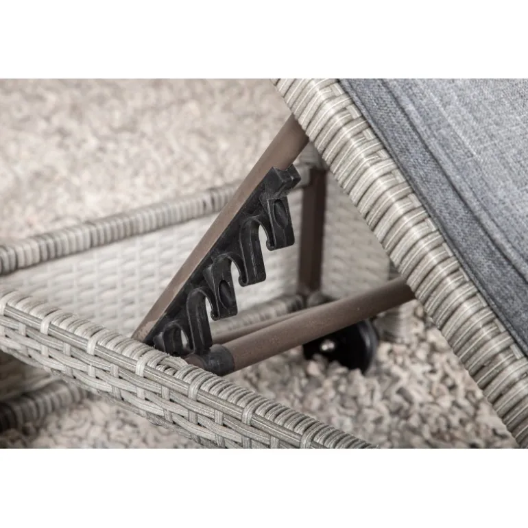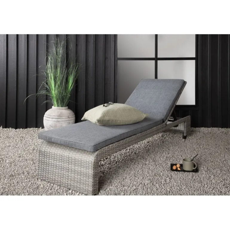 Stilfuldt og luksuriøst design gør denne solseng fra London-serien til et behageligt blikfang på din terrasse. Her får du en grå solseng med grå hynde, hjul og justerbar ryglæn for den optimale hvileposition. Solsengen er lavet af kunstig rattan, hvilket gør den holdbar i et udendørsmiljø. Robust, stabil og komfortabel – her kan du nyde frie øjeblikke på sommerens solrige dage. Plejeanvisning: Konstrite er et plastmateriale, der er perfekt til vores skandinaviske klima. Materialet er UV-resistent og kan modstå vejr og vind. Det faktum, at det er UV-resistent, betyder, at møblerne ikke falmer, men vi anbefaler altid at opbevare møblerne under en møbelbeskyttelse eller ellers tørt og køligt for at forlænge levetiden.