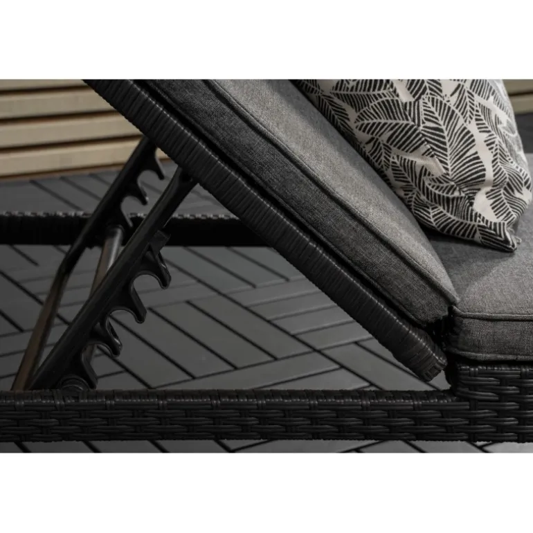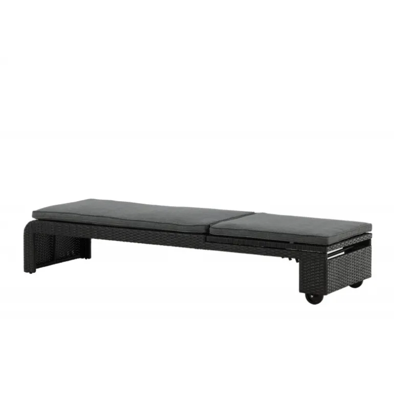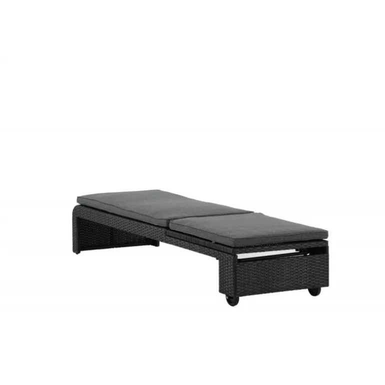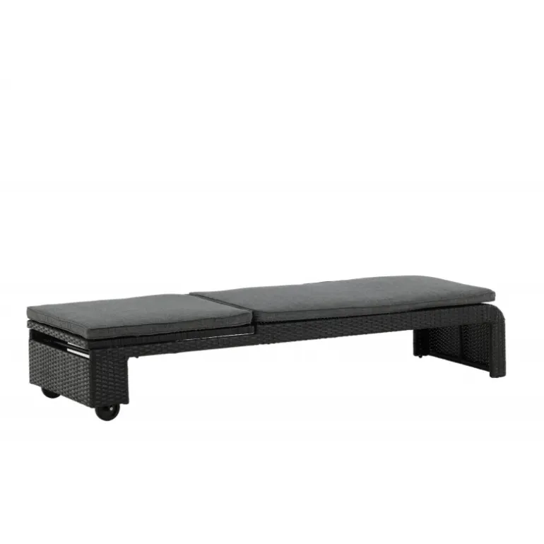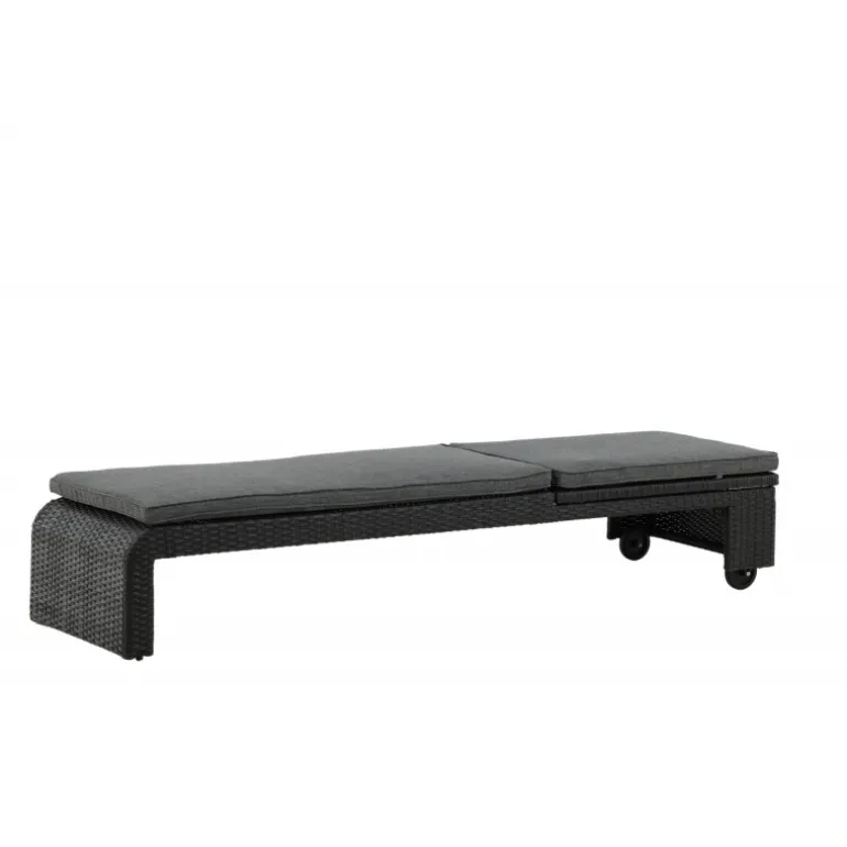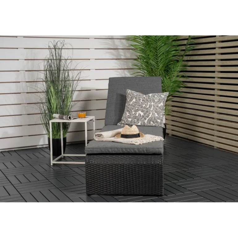 London solseng i et stilfuldt og pompøst design skaber en behagelig blikfang på din terrasse. Her får du en sort solseng med grå hynde, hjul og justerbar ryglæn for den optimale hvileposition. Solsengen er lavet af sort kunstig rattan, hvilket gør den holdbar i et udendørs miljø. Robust, stabil og komfortabel – her kan du nyde frie øjeblikke på sommerens solrige dage. Plejeråd: Konstrits er et plastmateriale, der er perfekt til vores skandinaviske klima. Materialet er UV-resistent og kan modstå vejr og vind. Det faktum, at det er UV-resistent betyder, at møblerne ikke falmer, men vi anbefaler altid at opbevare møblerne under et møbelovertræk eller på en anden tør og kølig måde for at forlænge levetiden.
