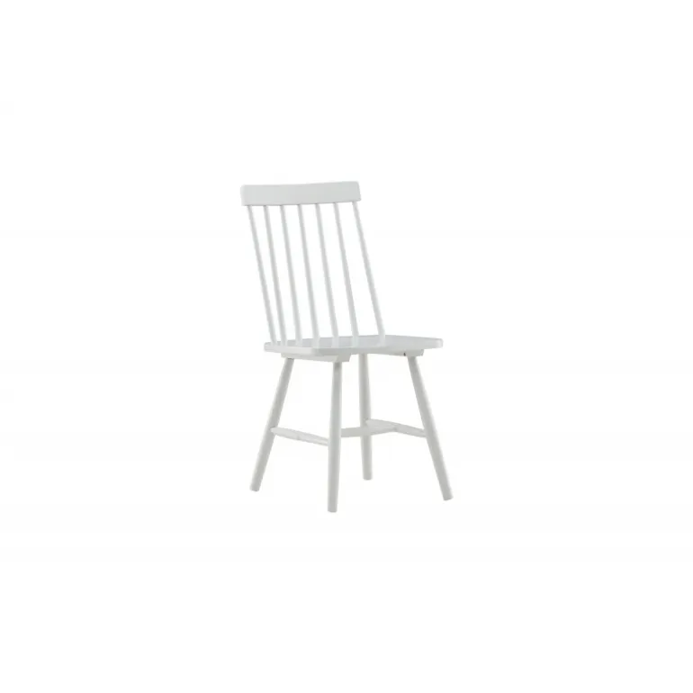 En pindstol/spisestol i nostalgisk stil fra Lonneberga-serien. Det stilfulde design er både moderne og praktisk. Fremstillet af gummitræ i en behagelig hvid farve. Supplér med et lækkert spisebord og skab en flot blikfang i hjemmets hjerte! Lettere montering er påkrævet. Vedligeholdelsesråd: Gummitræ er ofte lakeret eller malet med en farvepigment, der giver en dækkende/ikke-gennemsigtig overflade. Hvide lakoverflader kan være ekstra følsomme over for forskellige farvestoffer, der findes i madvarer, sodavand, rødvin og kaffe. Sørg for at fjerne pletter så hurtigt som muligt og fugt overfladen med en godt opvredet rengøringsklud og sæbeopløsning. Brug en støveklud til at tørre overfladen igen.