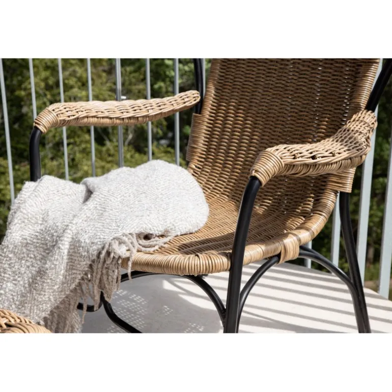 - Elegant design: Kombinerer sort ramme og syntetisk rattan for et luksuriøst udseende.