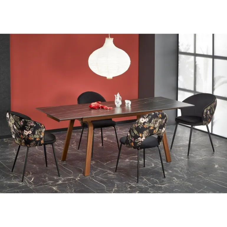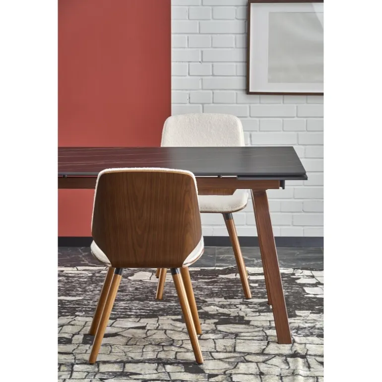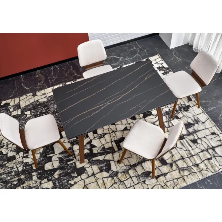LOZANO Spisebord med udtræk er det perfekte valg for dem, der ønsker en elegant og funktionel løsning til deres spisestue. Med en Sort marmorbordplade og valnødsben, kombinerer dette bord stil og holdbarhed. Bordets dimensioner er 140-200/82/76 cm, hvilket gør det ideelt til både små og store sammenkomster. Bordpladen er lavet af sinteret sten, mens benene er lavet af pulverlakeret stål, hvilket sikrer langvarig brug. Gør din spisestue komplet med dette smukke og praktiske Spisebord med udtræk.