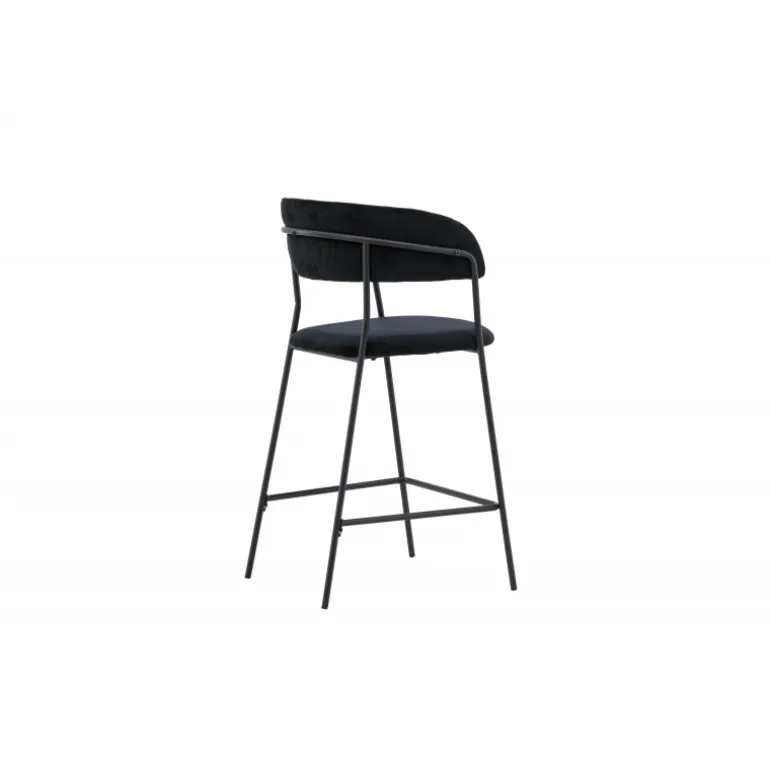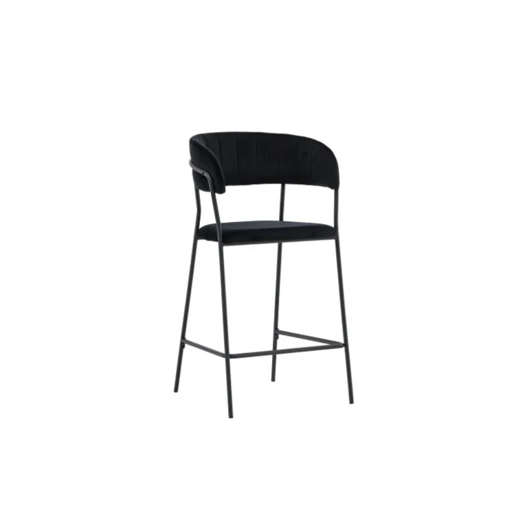 Indret hjemmets hjerte moderne, komfortabelt og tidløst med en iøjnefaldende barstol fra Lui-serien i en elegant sort farve! Denne barstol har et fuldt polstret design med en let afrundet ryg og sæde i polyesterfløjl med stilfulde dekorative syninger. Stolens ben er smalle i sort stål med integreret fodstøtte – garanteret både flot og komfortabel. Skab et indbydende og behageligt udseende omkring dit barbord og nyd dejlige måltider sammen!
