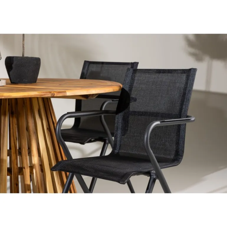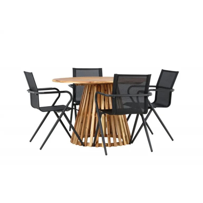 - Holdbart Materiale: Bord i akacietræ og stole i aluminium.