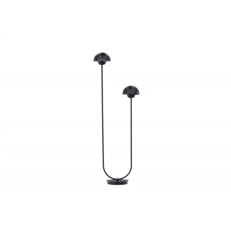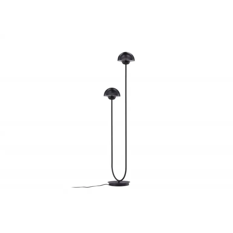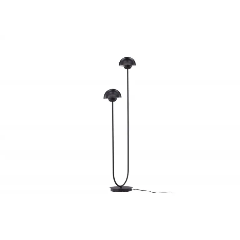 Gulvlampen fra Lyckorna-serien består af to mindre lamper, som er forbundet med en smuk sort jernundervogn. Lamperne har en afrundet skærm, der giver et behageligt lys til rummet. Denne lampe er perfekt for dem, der søger en dekorativ og stilfuld lampe med et blødt design, der passer ind i de fleste rum og indretningsstile. Giv rummet en hjemlig følelse ved at placere lampen i et mørkt hjørne i stuen eller ved lænestolen til alle aftenens læsestunder! Gulvlampen tilhører Vind Collection.