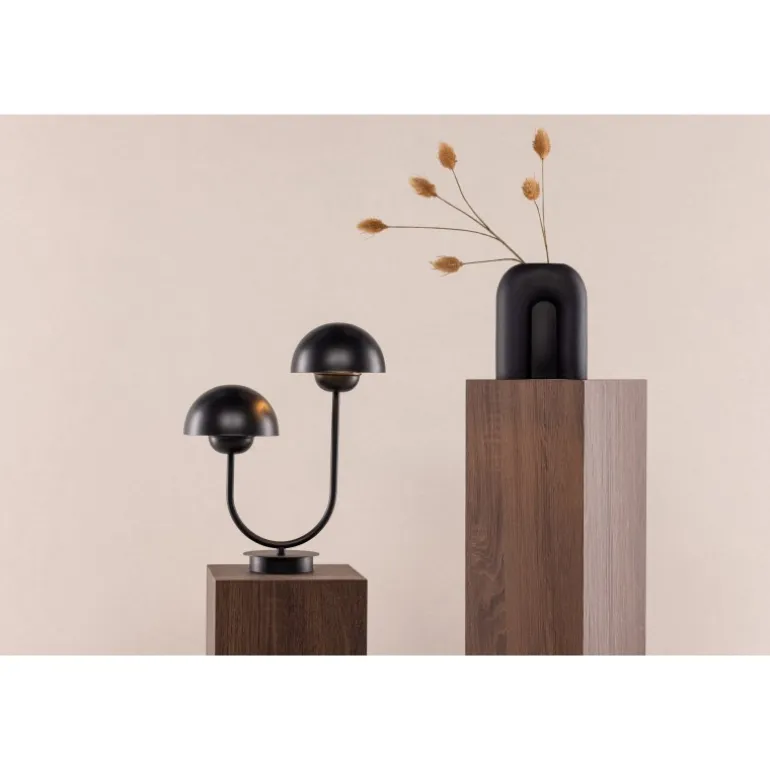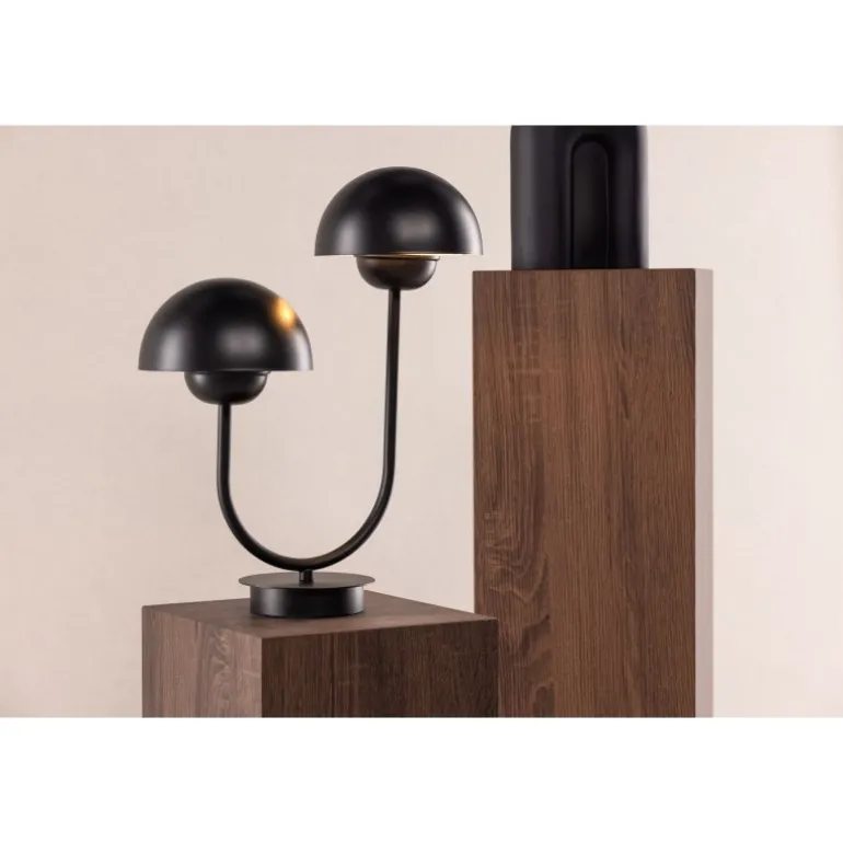 Bordlampen fra Lyckorna-serien består af to mindre lamper, der er sammenkædet med en sort jernunderdel. Lamperne har en rundet skærm, der giver et behageligt lys til rummet. Denne lampe er perfekt til dem, der søger en dekorativ, men stilfuld lampe med et blødt design, der passer ind i de fleste rum og indretningsstile. Placer den i vinduet eller i et hjørne af rummet for at skabe en hjemlig atmosfære. Bordlampen tilhører Vind Collection.