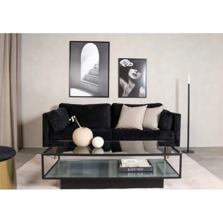 Maglehem sofabord har et iøjnefaldende design med et robust understel i sort metal og stilfulde glaspaneler. Der er også en smart hylde til nemmere opbevaring eller stilfulde dekorationer. Dette sofabord giver en dekorativ vægt til rummet og tilføjer en moderne følelse til dit hjem! Placer foran sofagruppen på et blødt pelsagtigt tæppe, og du får et komplet sted til næste fredag aften! Sofabordet tilhører Furniture Fashion.