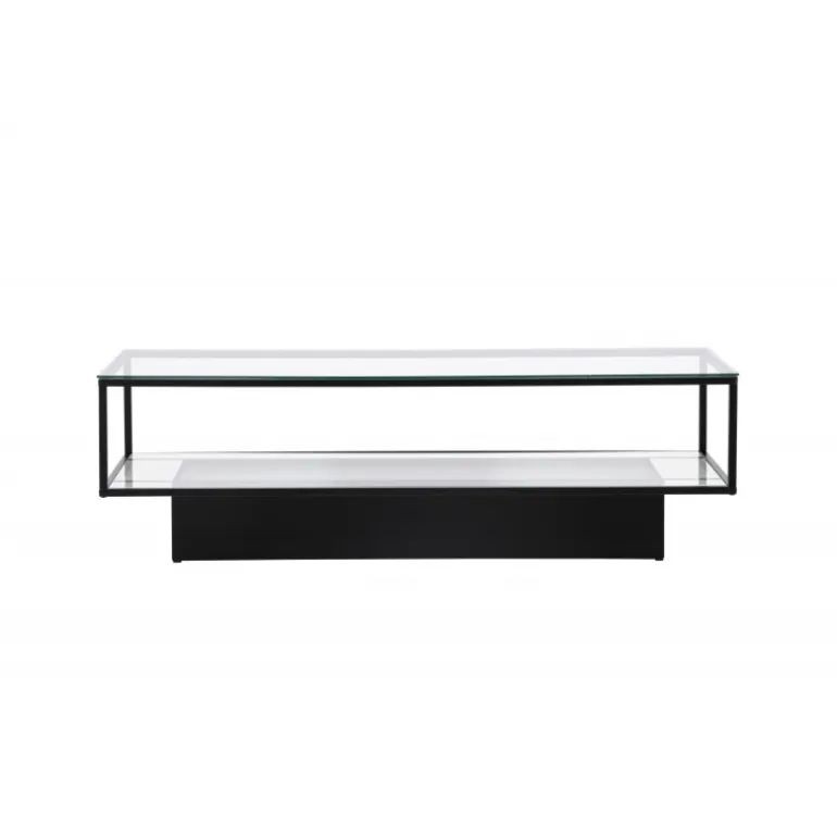 - Robust design: Understel i sort metal og stilfulde glaspaneler.