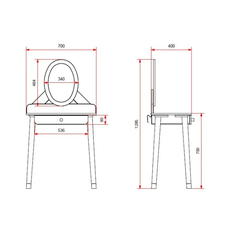 Makeupbord Billy – hvid satin med spejl og skuffe
