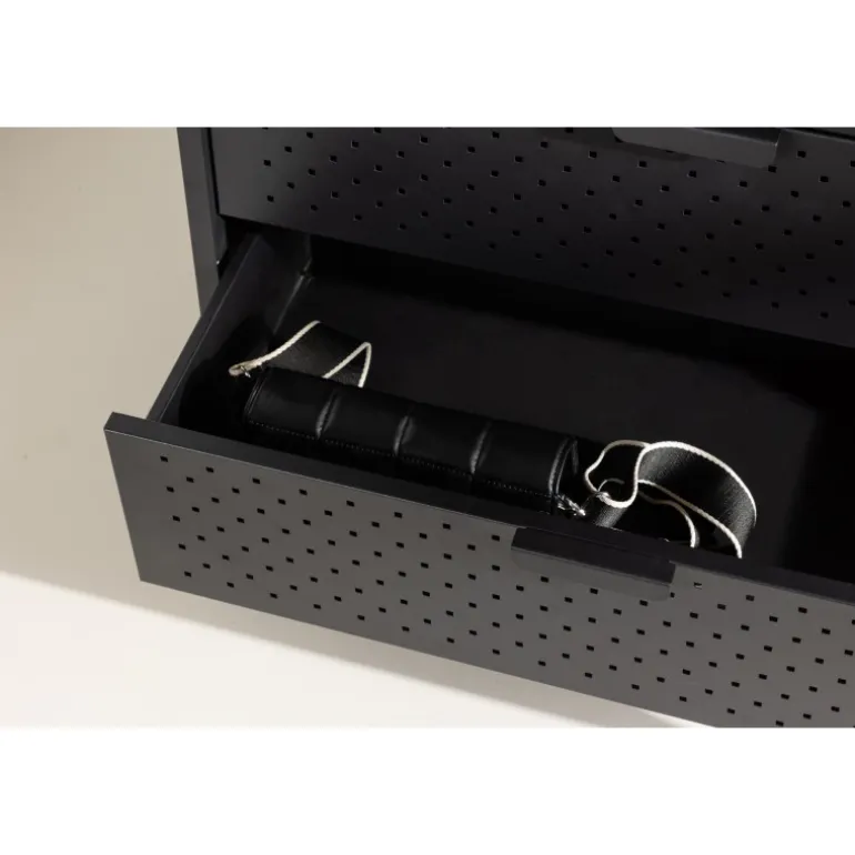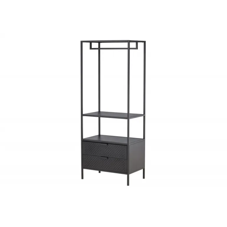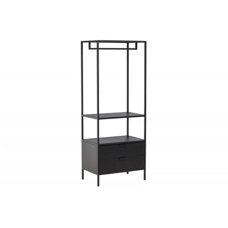 Skab orden og stil med Malibu – vores sorte tøjstativ i nordisk design! Med sit moderne skandinaviske design bringer det en følelse af minimalistisk elegance til dit hjem. Men frem for alt tilbyder dette tøjstativ meget mere end bare et sted at hænge dit tøj. Bemærk hvordan stressen smelter væk, når du ser din hverdag organiseret og i perfekt orden. Her kan du nyde fordelene ved skjult opbevaring med to rummelige skuffer i bunden. Der er også en lav hylde, som er skræddersyet til dine sko og foldede jeans. Kvalitetsfremstillet i sort stål. Simpelt og tilgængeligt – præcis som det skal være. Tag en dyb indånding og føl, hvordan de små ting kan gøre en stor forskel i din morgenrutine. Vores mål er ikke blot at levere møbler, men at give dig en oplevelse. Vores sorte tøjstativ er ikke kun møbler; det er nøglen til et mere organiseret og stilfuldt liv, og det bliver også en stilfuld interiørdetalje i dit hjem. Velkommen til en hverdag, hvor orden og skønhed går hånd i hånd!
