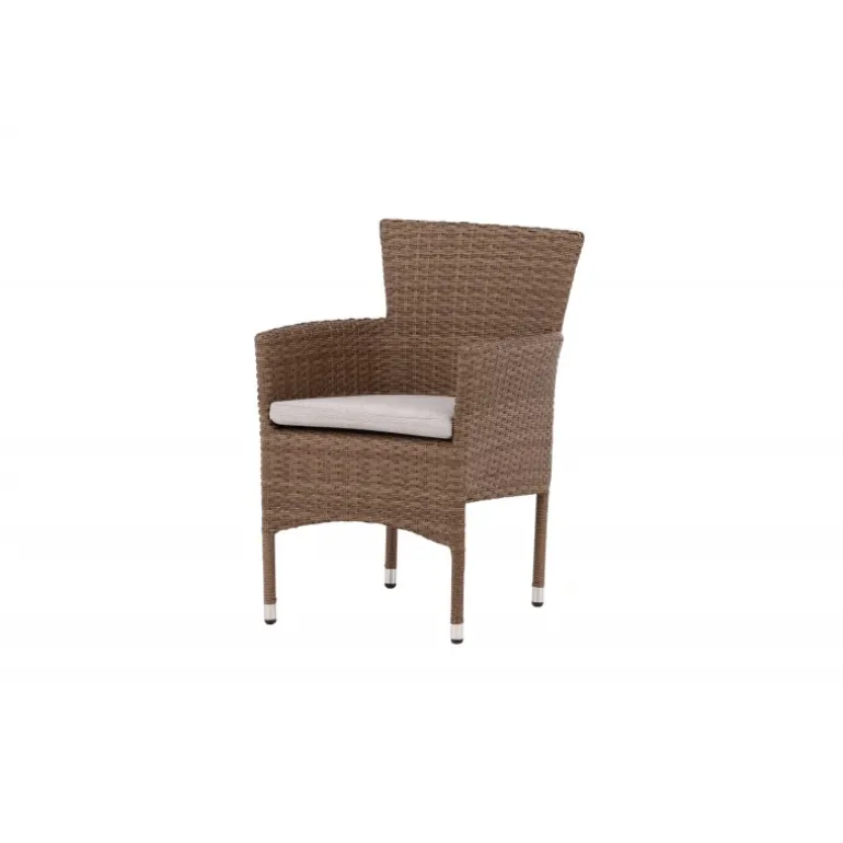 Moderne, stilfuld og holdbar – hvad mere kan man ønske sig? I denne lækre armstol fra Malina-serien kan du nyde mange middage med dine kære i løbet af sommeren. Med en ramme i jordnær beige aluminium og syntetisk rattan får du en robust stol, der står tidens prøve. Sid komfortabelt denne sommer og nyd lækre måltider udendørs! Stolen er stabelbar.