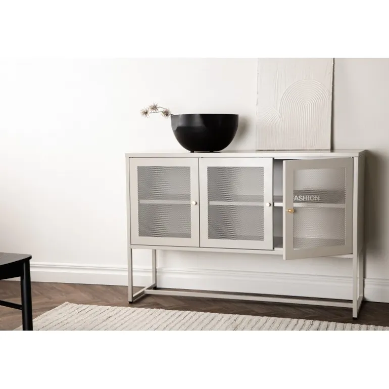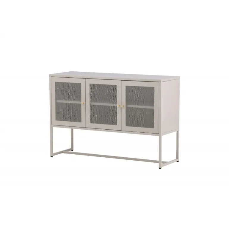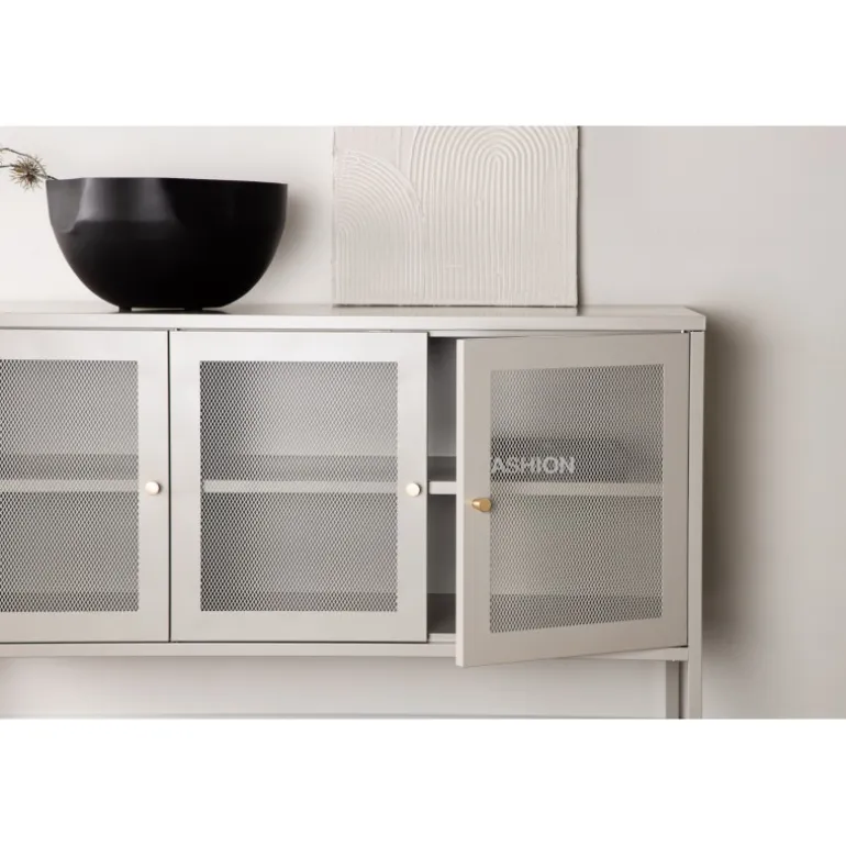 Malla – et moderne skab i et robust industrielt design med lækre netdøre og ben lavet af beige pulverlakeret stål med 2 smarte hylder til opbevaring. Skabet løftes af smalle, høje ben, der skaber en luftig følelse og gør det nemt at støvsuge under. Den perfekte opbevaringsmøbel til alt, hvad du ønsker – fyld det med porcelæn, bøger eller smukke dekorationer. Skabets fleksible størrelse og elegante udseende gør det nemt at placere og passer godt ind i de fleste rum i hjemmet, så du kan indrette efter dine egne behov og ønsker!