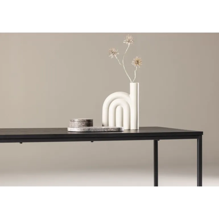- Tidløst design: Sort MDF-bordplade og elegante stålben.