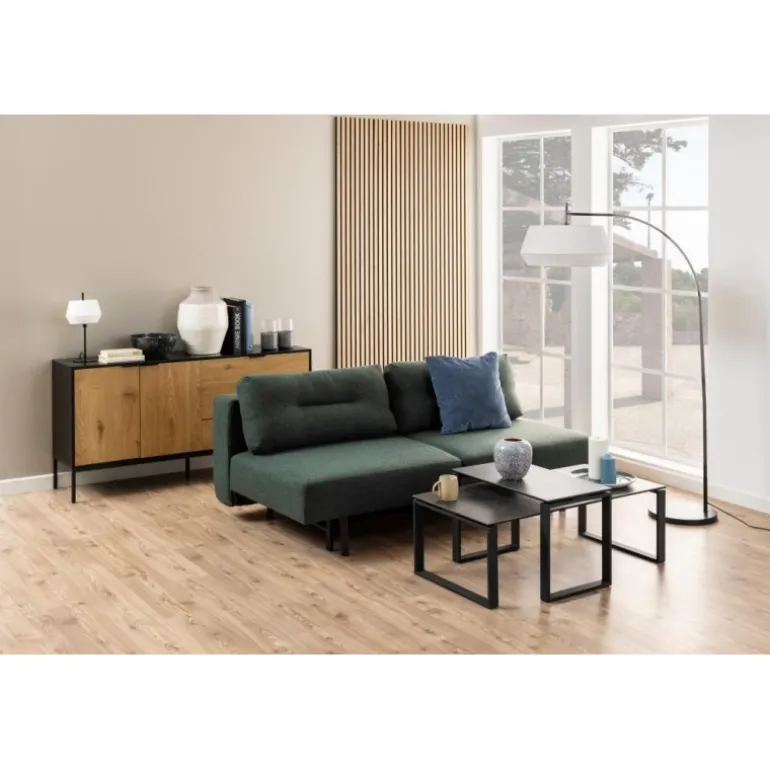 Malling sovesofa Spirit stof grøn 2, udtræk, posefjedre, puder 2 stk, ben metal, pulverlakeret ru, mat sort
