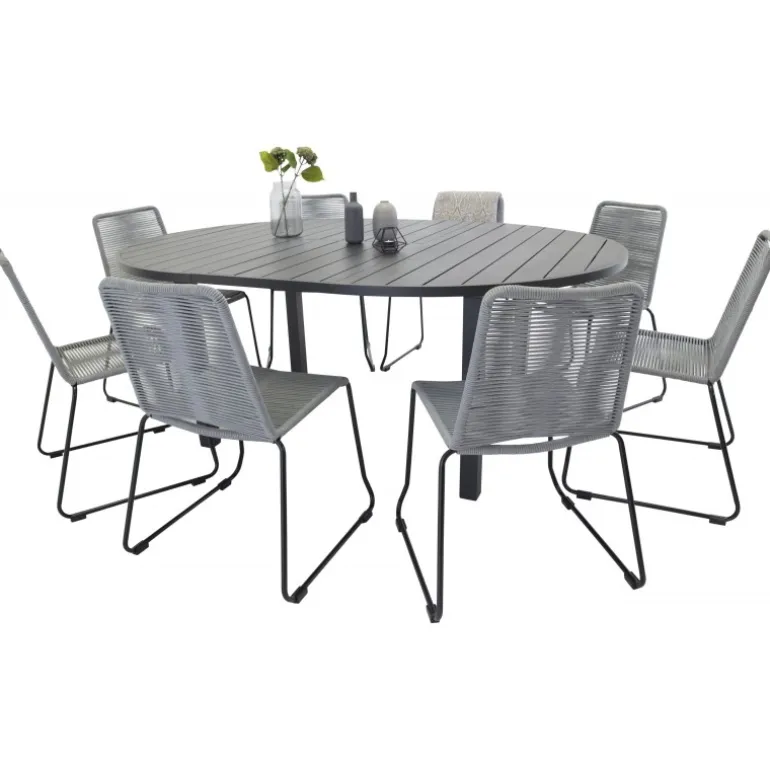 Hvad mere kan du ønske dig end et Loungesæt – Havemøbelsæt, der både er tidløst, praktisk og har plads til alle dine kære? Det er præcis, hvad denne kombination tilbyder! Vores runde spisebord Marbella garanterer, at ingen ender på kanten. Her sammen med Lindos spisebordsstole i et kunstnerisk design. Udvid dine middagsinvitationer og nyd dejlige sommeraftener sammen på terrassen!