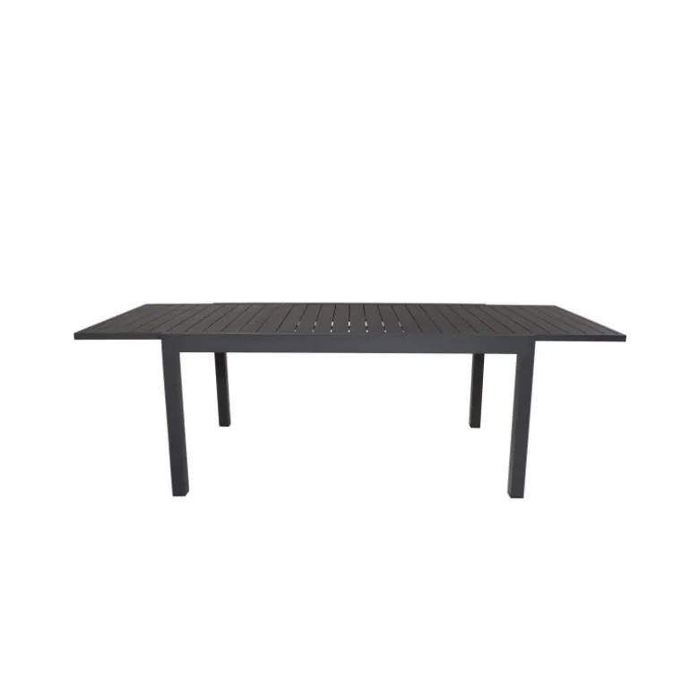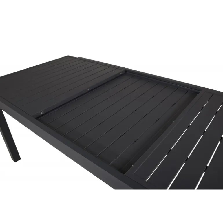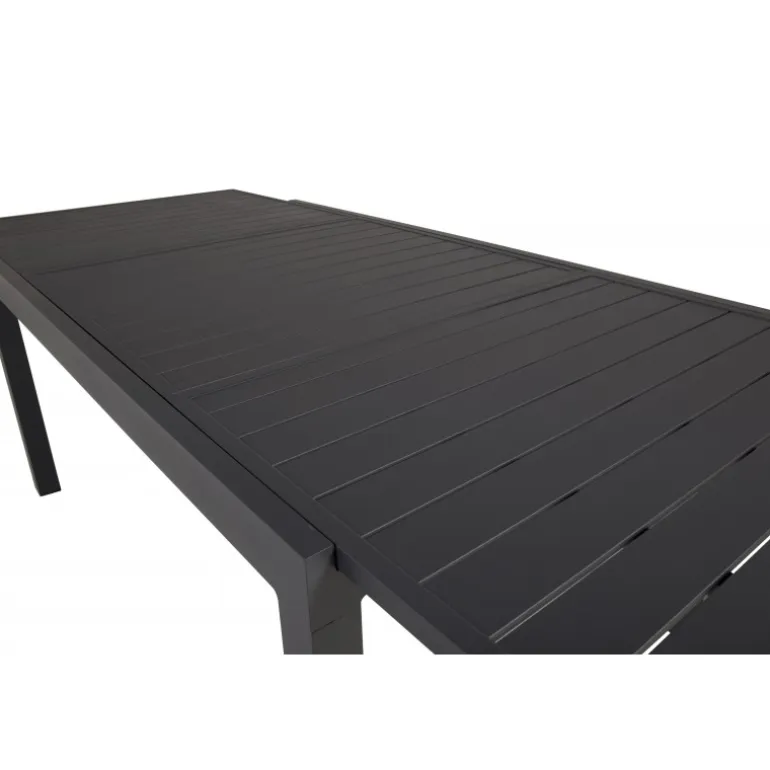 Indret terrassen eller udendørsområdet med et stilfuldt spisebord i lige, nordisk design! Marbella er et rektangulært, holdbart spisebord i sort aluminium, der kan forlænges efter behov. “Dress up or dress down” din spiseoplevelse ved at vælge dine foretrukne spisestole. Vi har masser af komfortable og stilfulde udendørsstole, du kan kombinere med. Gør dig klar til sommerens natteliv og dejlige måltider udendørs! Plejeråd: Udendørsmøbler i aluminium og rustfrit stål bør rengøres regelmæssigt med vand og mild sæbe. Skyl altid grundigt med rigeligt vand, hvilket er ekstra vigtigt, hvis møblerne er placeret tæt på havet, hvor salt kan transporteres gennem luften.