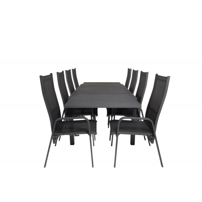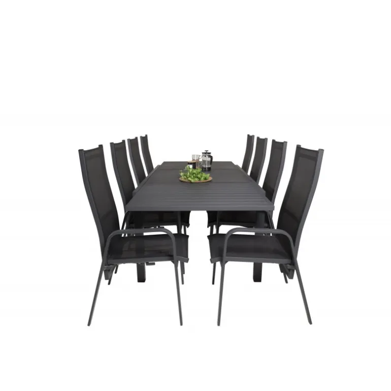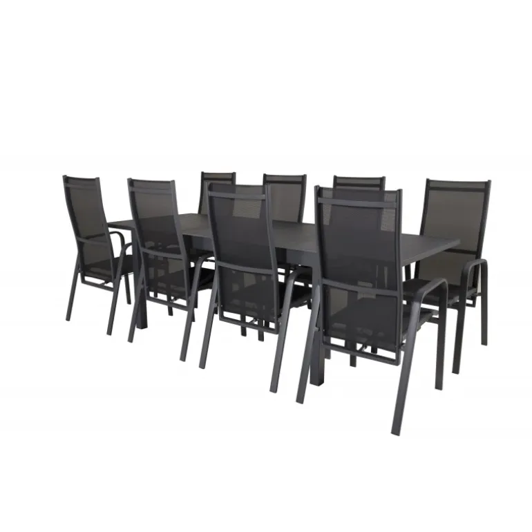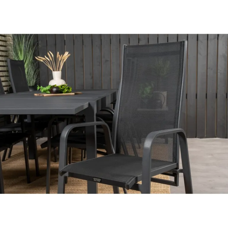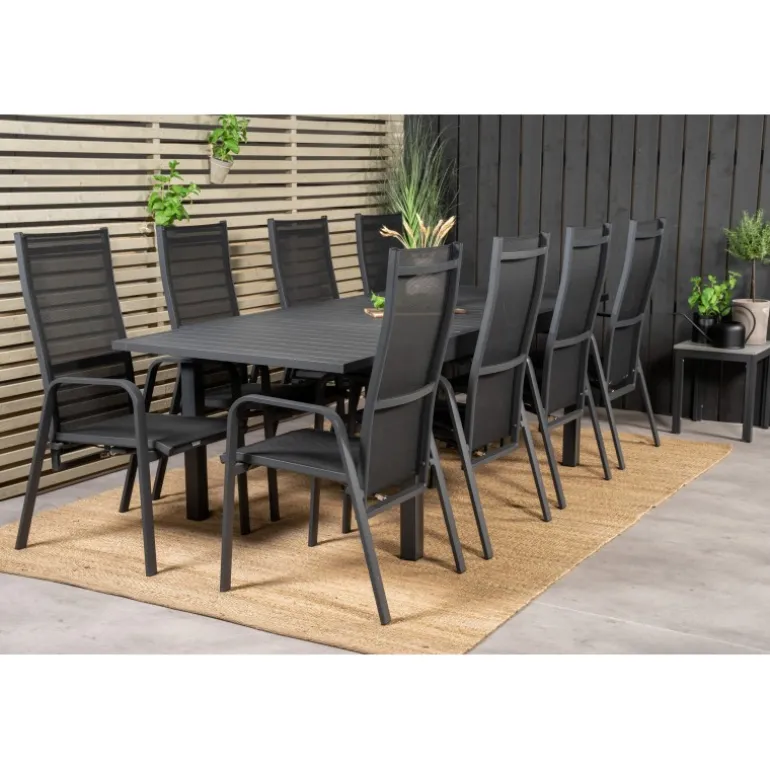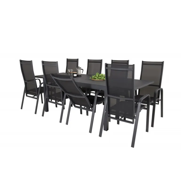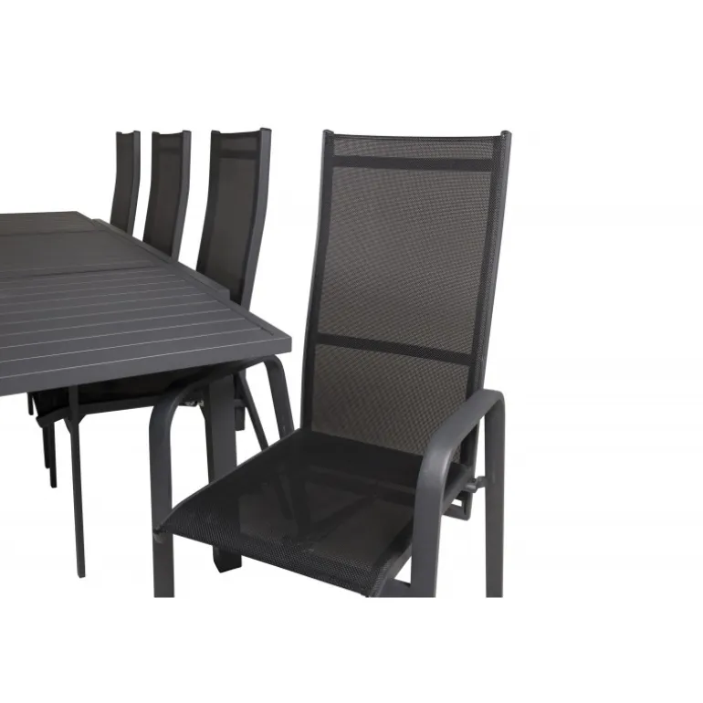 - Holdbart materiale: Fremstillet af aluminium og tekstilene, som er lette og rustfri, hvilket gør sættet ideelt til udendørs brug.