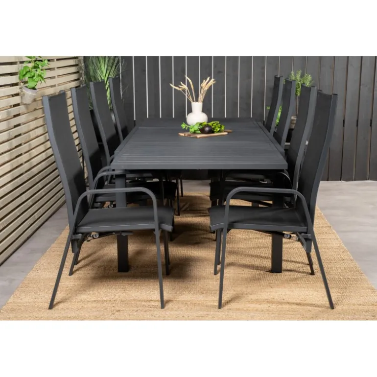 Lad dette smukt matchede Loungesæt – Havemøbelsæt med en moderne følelse blive et naturligt samlingspunkt på balkonen. Spisestolene Copacabana tilbyder god komfort, og spisebordet Marbella sikrer, at der er plads til alle. Fremstillet af holdbart aluminium og tekstilene, er dette sæt perfekt til udendørs brug og kræver kun minimal vedligeholdelse. Nyd dine måltider i stil og komfort med Marbella Rektangulært Loungesæt – Havemøbelsæt.