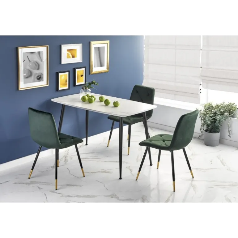 Oplev elegance og funktionalitet med MARCO Bord. Dette stilfulde bord har en overflade af hvid marmor og Sorte ben, der giver et moderne og sofistikeret udseende. MARCO Bord er perfekt til spisestuen eller kontoret og skaber et elegant fokuspunkt i ethvert rum. Med dimensionerne 120/70/77 cm passer det nemt ind i mange forskellige indretninger. Bordet er fremstillet af glas, lakeret MDF og pulverlakeret stål, hvilket sikrer holdbarhed og lang levetid.