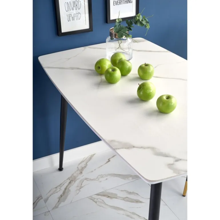 - Stilfuldt design: Hvid marmor overflade og Sorte ben.