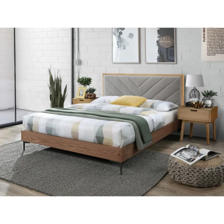 Oplev ultimativ komfort med MARGARITA 160x200cm seng, grå / naturlig. Denne seng kombinerer moderne design med holdbare materialer som MDF, naturlig finer, stof og pulverlakeret stål. Den elegante grå stof og naturlige træfarve passer perfekt ind i ethvert soveværelse. Bemærk, at sengen leveres uden madras, men du kan vælge en POLARIS 160x200cm eller SYRIUSZ 160x200cm madras for optimal støtte og komfort.