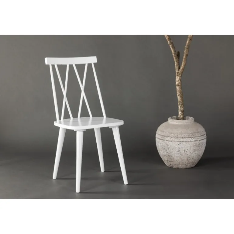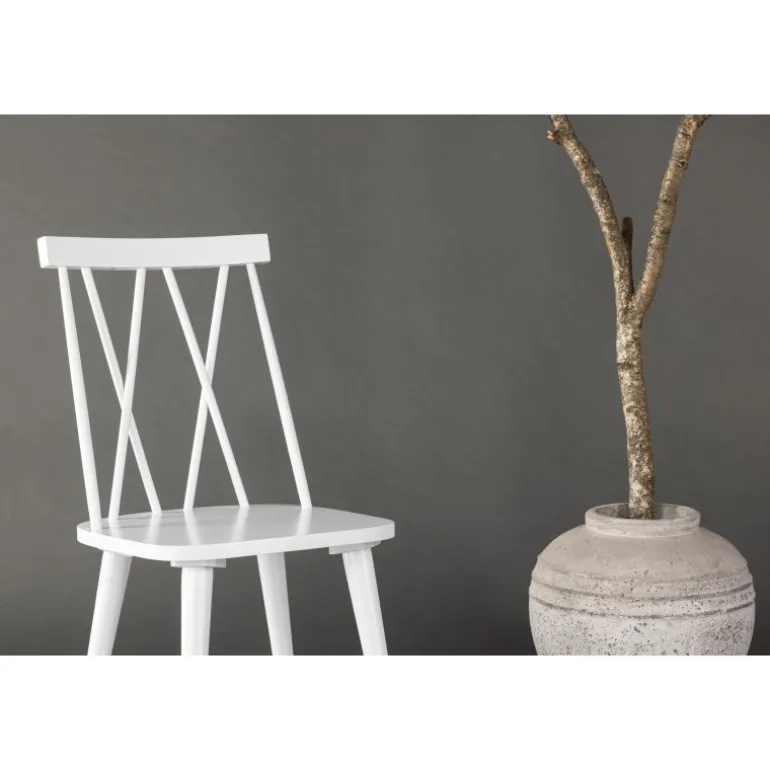 Opdater dit spisestue med den stilfulde og elegante spisestuestol Mariette. Denne smukke spisestuestol vil helt sikkert tilføje et moderne touch til din indretning. Med sit elegante design og unikke detaljer er Mariette den perfekte kombination af stil og funktionalitet. Mariette er lavet af gummitræ, hvilket giver både holdbarhed og naturlig charme. Den hvide farve giver stolen en frisk og lys følelse, der passer perfekt til forskellige typer indretningsstile. Uanset om du har en moderne, klassisk eller skandinavisk stil i dit hjem, vil Mariette komplementere og forbedre udseendet af din spisestue.