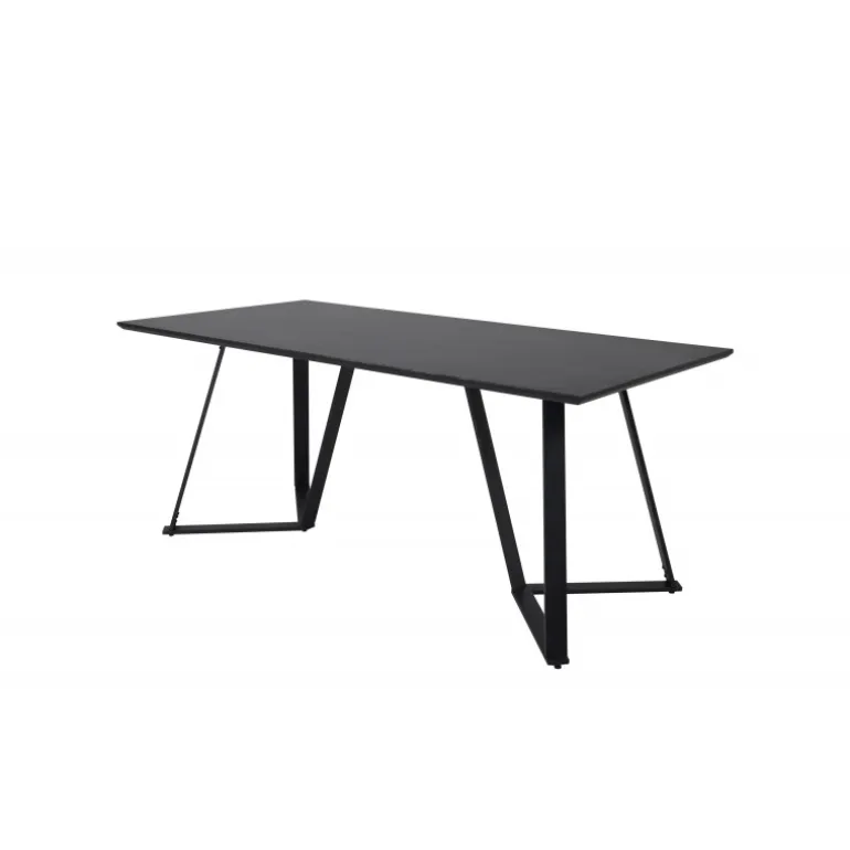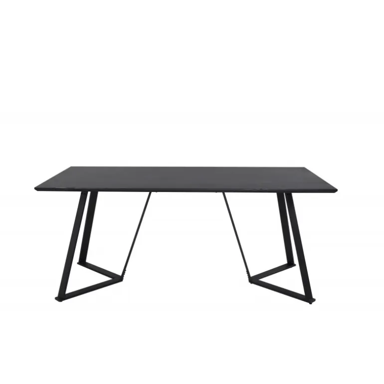 Marina Spisebord er et rektangulært spisebord med en bordplade i MDF og dekorative metalbordben. Spisebordet er konsekvent i sort farve, hvilket giver rummet et pompøst og selvsikkert udtryk. “Dress up eller dress down” din madgruppe ved at vælge dine type spisestole. Vi har masser af komfortable og stilfulde spisestole, som du kan kombinere med. Sæt dit personlige præg på interiøret og skab et lækkert blikfang i din stue! Plejeråd: MDF-plader, der er malede eller lakerede, er følsomme over for ridser og skader. Vær derfor forsigtig med pladerne for at undgå dette. Overflader, der er malet med lak med farvepigment eller maling har en pigmentering, der giver en ikke-dækkende transparent overflade. Fødevarer som sodavand, rødvin og kaffe indeholder farvestoffer, som hvide lakker er ekstra følsomme over for.