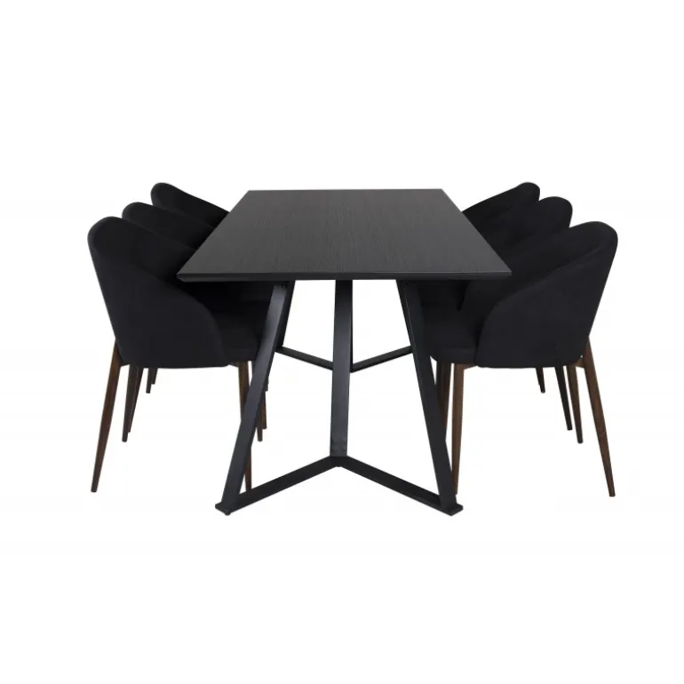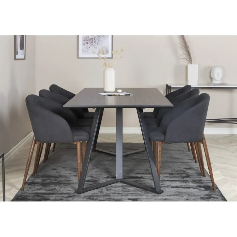 Vores populære Marina spisbord i et enkelt design. Her sammen med lækre spisebordsstole i Arch-serien. Stolens rustikke træben kombineres perfekt med den sorte elegance. Indret i stuen og lad hjemmets hjerte præges af din nye iøjnefaldende Spisebordssæt.