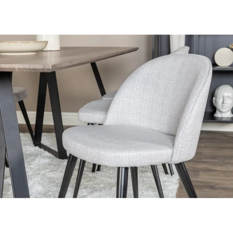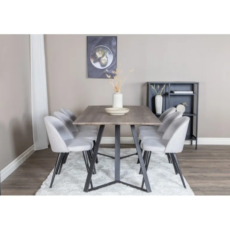 Vores stilfulde og siddevenlige spisestuestole i fløjl kombineret med spisestuebordet Marina passer perfekt i de fleste husholdninger. Et bord med masser af plads til middage og hyggeligt samvær. Indret med en gylden kant i hverdagen – det skal føles dejligt at komme hjem!