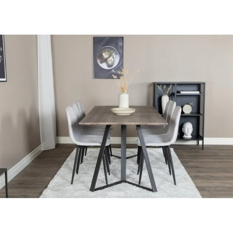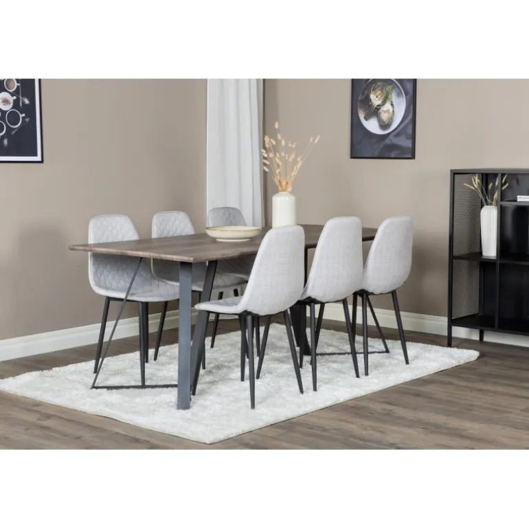 Vores populære spisebordsstole i Polar-serien inviterer til lange, hyggelige øjeblikke omkring spisebordet. Her sammen med vores grå Marina spisebord med smukt benstel. Sæt dig ned i denne indbydende og stilfulde Spisebordssæt til lange middage med familien!