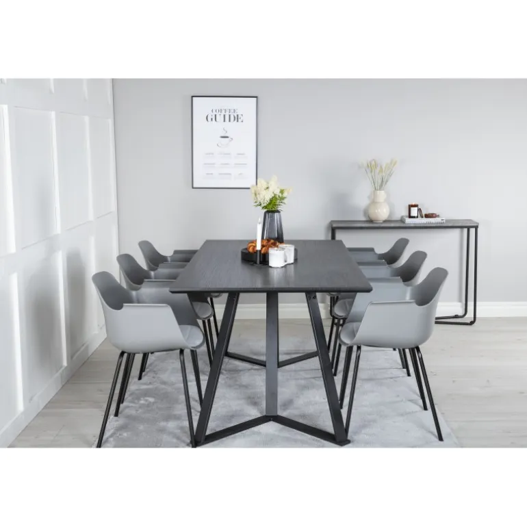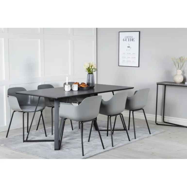 - Elegant Farve: Sort bordplade og grå stole, der matcher de fleste indretninger.