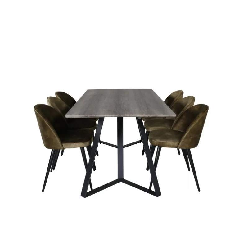 Oplev Marina Rektangulær Spisebordssæt – det perfekte valg for dem, der søger et moderne og indbydende spisebordssæt til stuen. Dette klassiske spisebord i elegant stil kombineres med lækre fløjlsstole fra Velvet-serien, hvilket gør det til en øjeblikkelig blikfanger. Med plads til alle er dette sæt ideelt til både hverdag og festlige sammenkomster. Bordet og stolene er lavet af holdbare materialer som MDF, stål og bøjetræ, hvilket sikrer langvarig holdbarhed. Tilgængelig i flere farvekombinationer for at passe til din indretning.