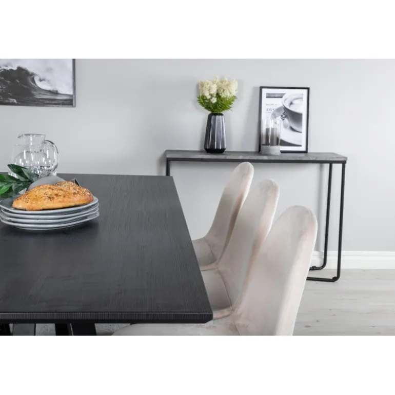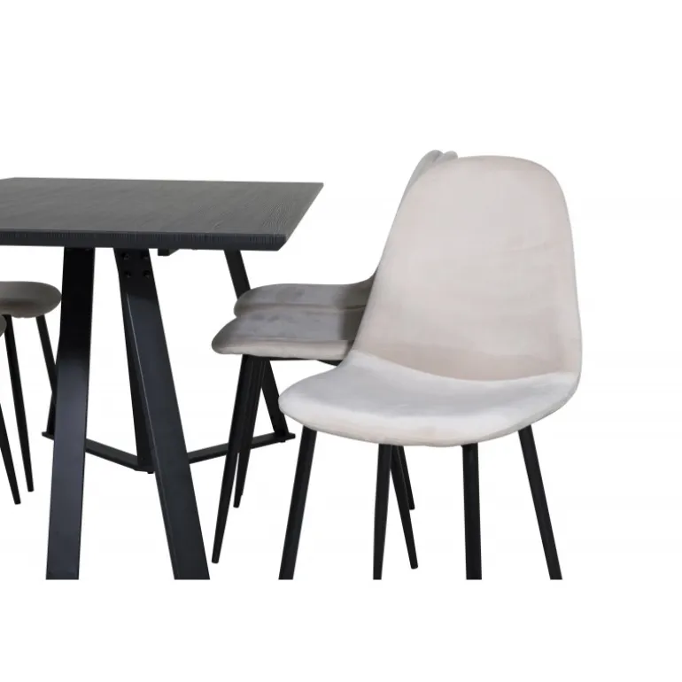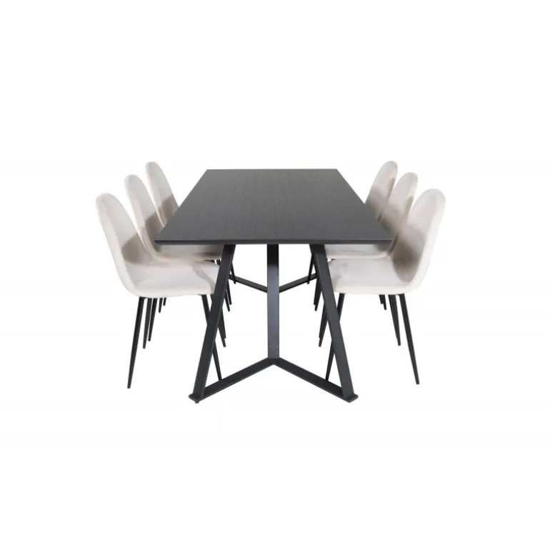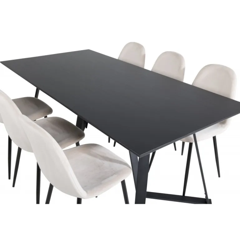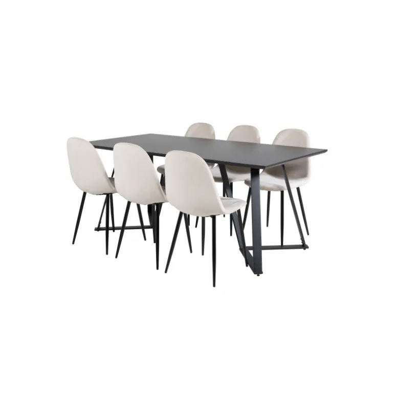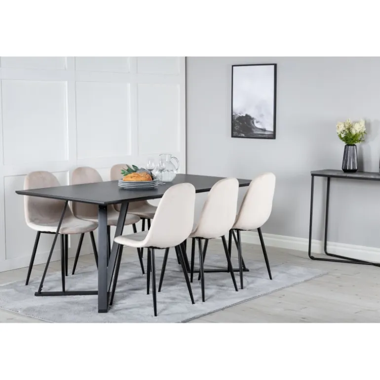Moderne og hyggeligt! Marina Rektangulært Spisebordssæt kombinerer et sort spisebord med beige polar spisebordsstole og skaber et samlingspunkt, der gør hjemmet ekstra indbydende. Stolene er robuste og komfortable, hvilket gør dem perfekte til lange middage og hyggelige stunder med gode venner.