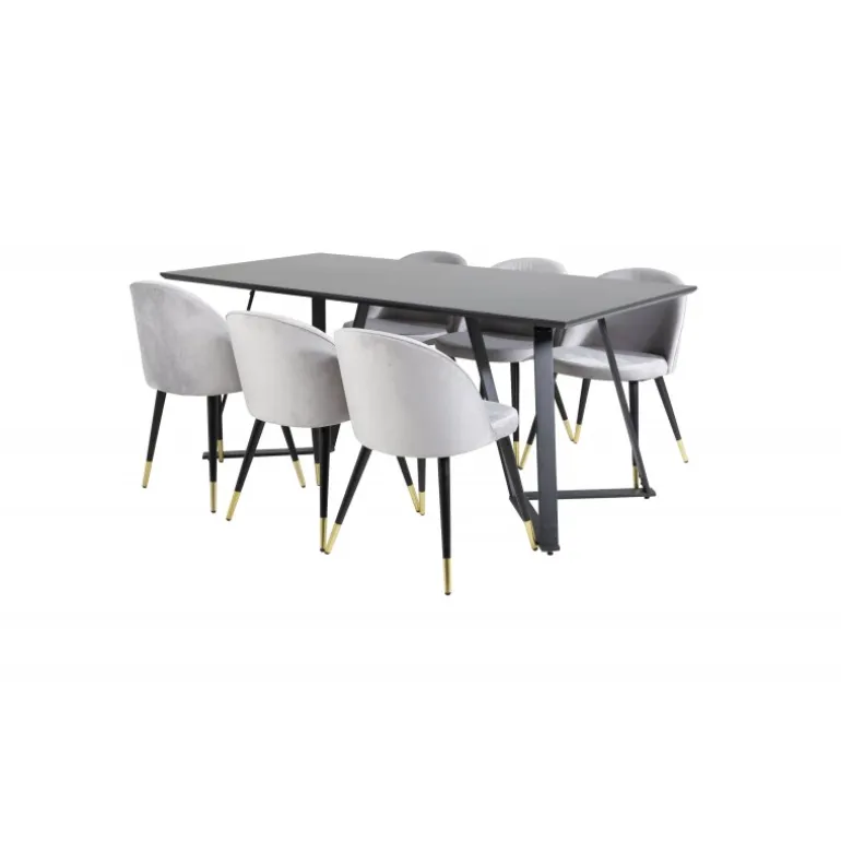 Køb af et præ-komponeret Spisebordssæt er både trendsikkert og praktisk! Her kombinerer vi vores spisebord Marina med vores luksuriøse Velvet spisebordsstole. Lad hjemmets hjerte præges af din nye iøjnefaldende Spisebordssæt. Marina Rektangulært Spisebordssæt tilbyder både elegance og komfort til din spisestue. Med en sort MDF bordplade og stole i bøjet træ, skum og stål, er dette sæt designet til at imponere og holde.