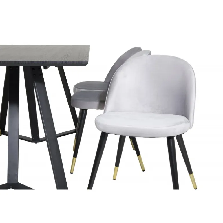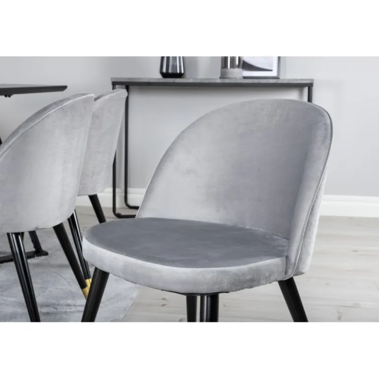 - Komfortable Stole: Velvet spisebordsstole i bøjet træ, skum og stål for ekstra komfort.
