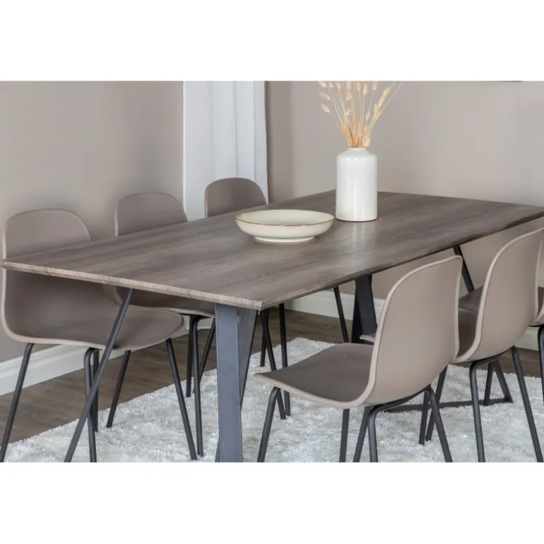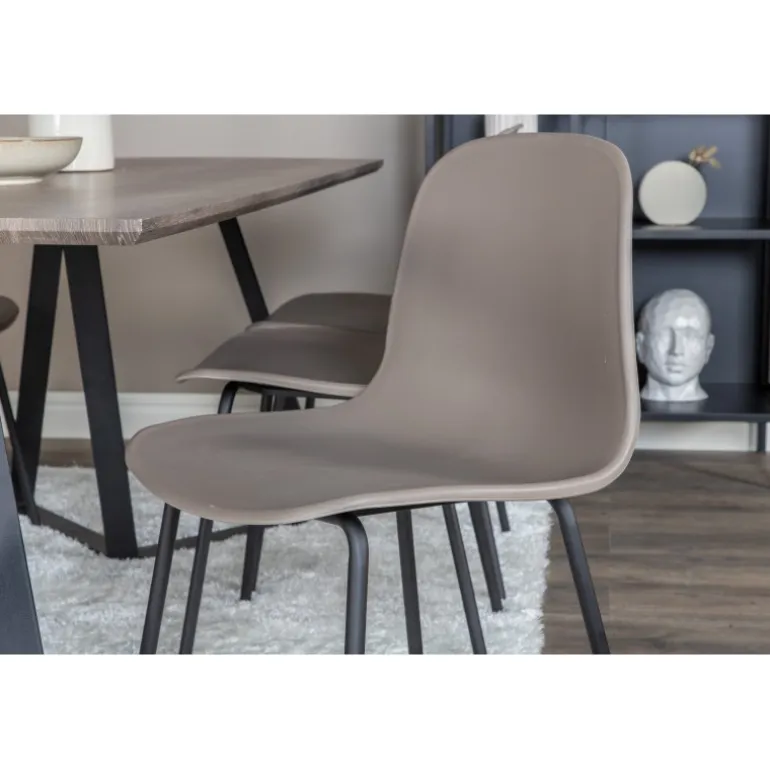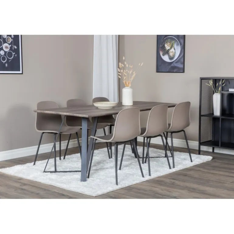 Vores populære spisestole Arctic i den lækre muldvarpefarve Khaki. Her sammen med spisebordet Marina i et slående design. En indbydende og iøjnefaldende Spisebordssæt, der skaber en varm følelse i rummet! Perfekt til indendørs brug, dette sæt kombinerer stil og funktionalitet, hvilket gør det til et ideelt valg for enhver spisestue.