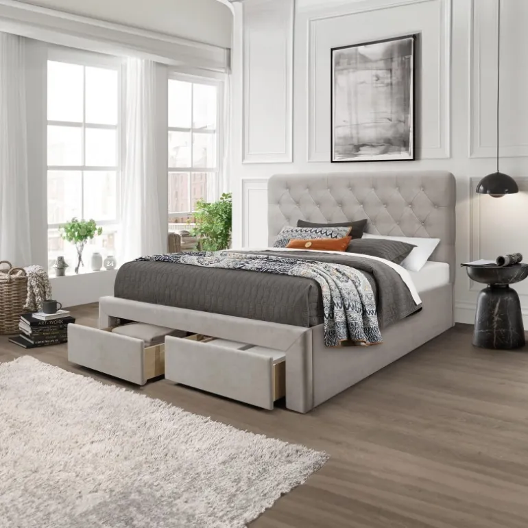 Tilføj luksus og funktionalitet til dit soveværelse med MARISOL 160 cm seng beige. Bestil nu og opgrader din soveoplevelse!