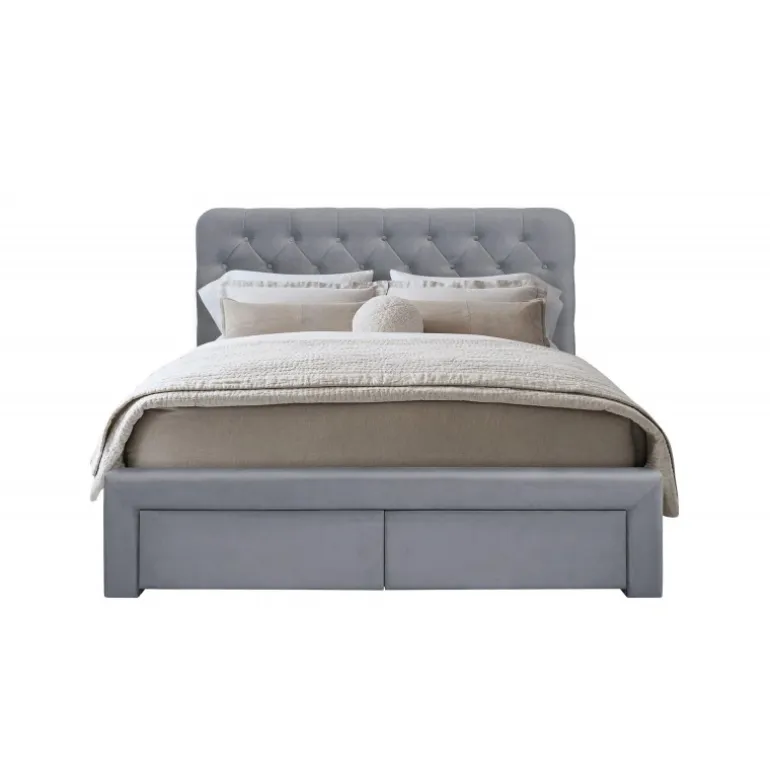 Gør dit soveværelse komplet med MARISOL 160x200cm cm seng i grå Velour – køb nu!