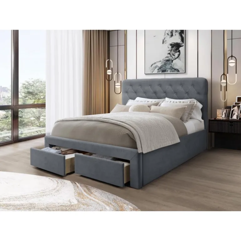 - Elegant design: Grå Velour, der tilføjer et luksuriøst præg til dit soveværelse.