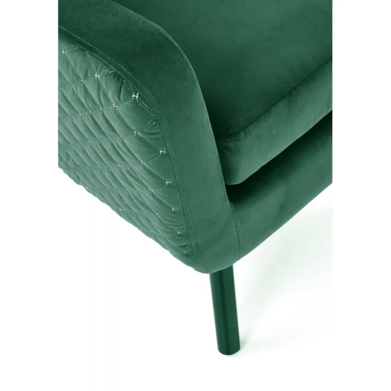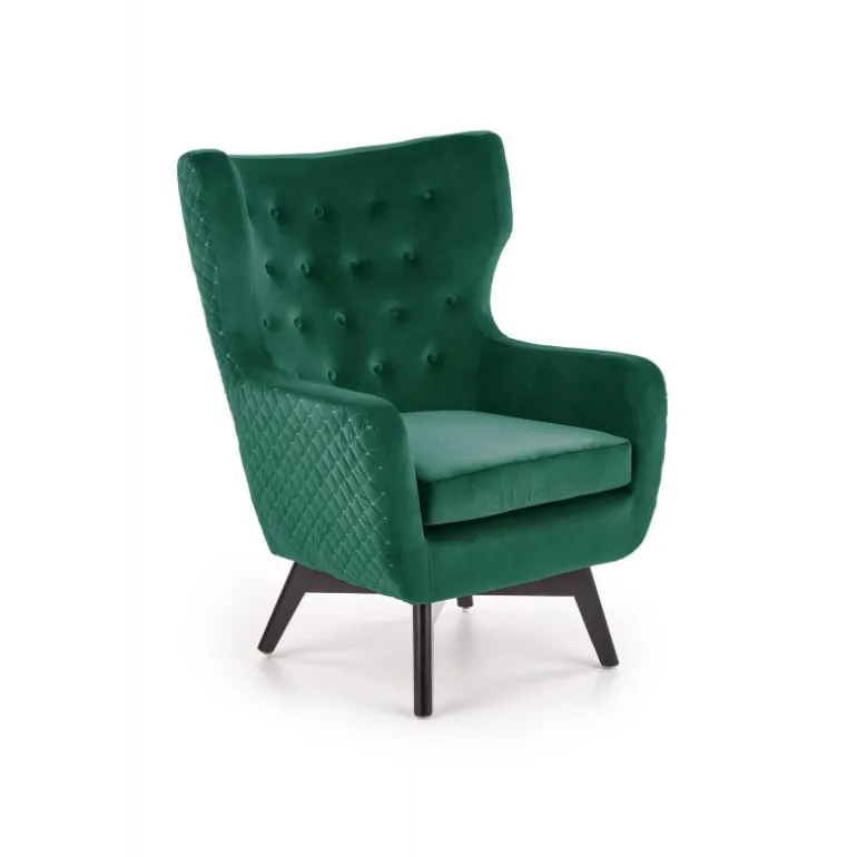 Oplev den ultimative komfort med MARVEL l. stol i en elegant mørkegrøn farve. Denne stol er designet med både stil og funktionalitet i tankerne, hvilket gør den til det perfekte valg for enhver stue eller afslapningsområde. Med dimensionerne 75/83/103/50 cm og en robust konstruktion af stof og massivt træ, sikrer denne stol både holdbarhed og et sofistikeret udseende. De Sorte ben tilføjer et moderne touch, der komplementerer den mørkegrønne polstring perfekt.