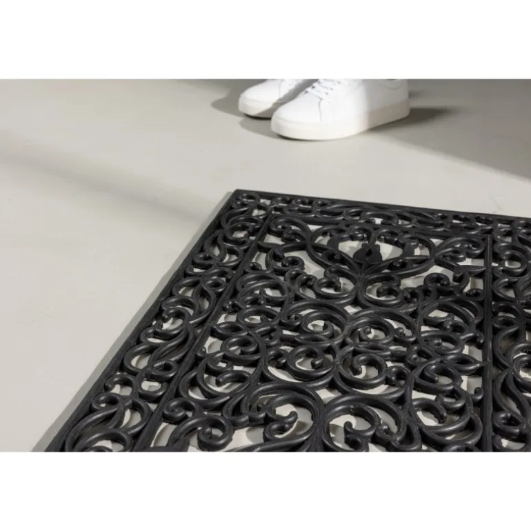 Velkommen dine gæster med stil og elegance lige ved døren med vores Mats dørmåtte! Med vores rektangulære dørmåtte Mats får du ikke kun en praktisk løsning til at holde snavs og fugt væk fra dine gulve, men også en smuk indretningsdetalje, der imponerer dine besøgende. Den sorte farve og det indviklede, hule mønster på måtten giver den et sofistikeret og eksklusivt udseende. Uanset om du har en moderne indretning eller en mere klassisk stil, vil denne måtte supplere dit hjem på bedste vis. Med Mats får du ikke kun en stilfuld indretningsdetalje, men også et højkvalitets funktionelt produkt. Lavet af holdbart gummi er den modstandsdygtig over for slid og giver en stabil og skridsikker overflade. Det indviklede og hule mønster på måtten fungerer som en effektiv skraber, der sikrer, at snavs og affald bliver fanget og ikke kommer ind. Gør et statement ved din indgang og lad din personlige stil skinne igennem med din nye dørmåtte!