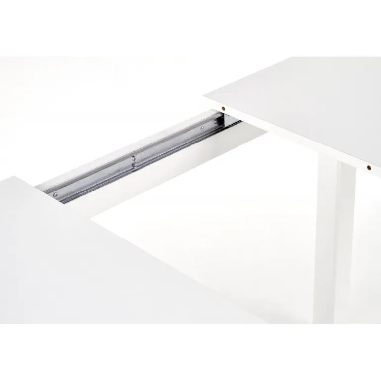MAURYCY Spisebord med udtræk i hvid er den perfekte løsning til din spisestue eller køkken. Med dimensionerne 118÷158/75/76 cm kan dette bord nemt justeres for at imødekomme flere gæster eller spare plads, når det ikke er i brug. Materialet på toppen er en lamineret møbelplade med ABS-plastik på kanterne, mens benene er lavet af lamineret MDF, hvilket sikrer holdbarhed og en moderne æstetik.