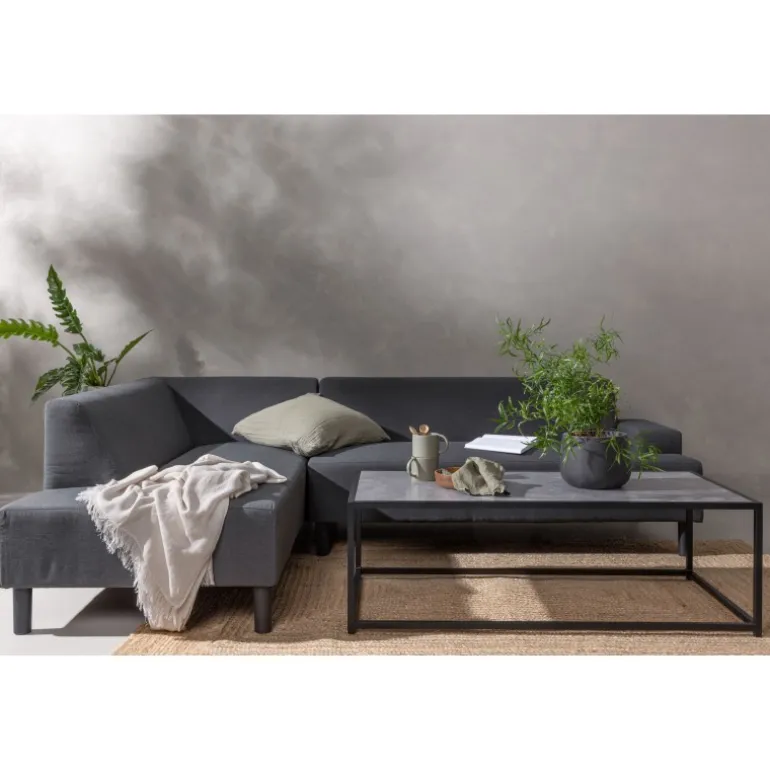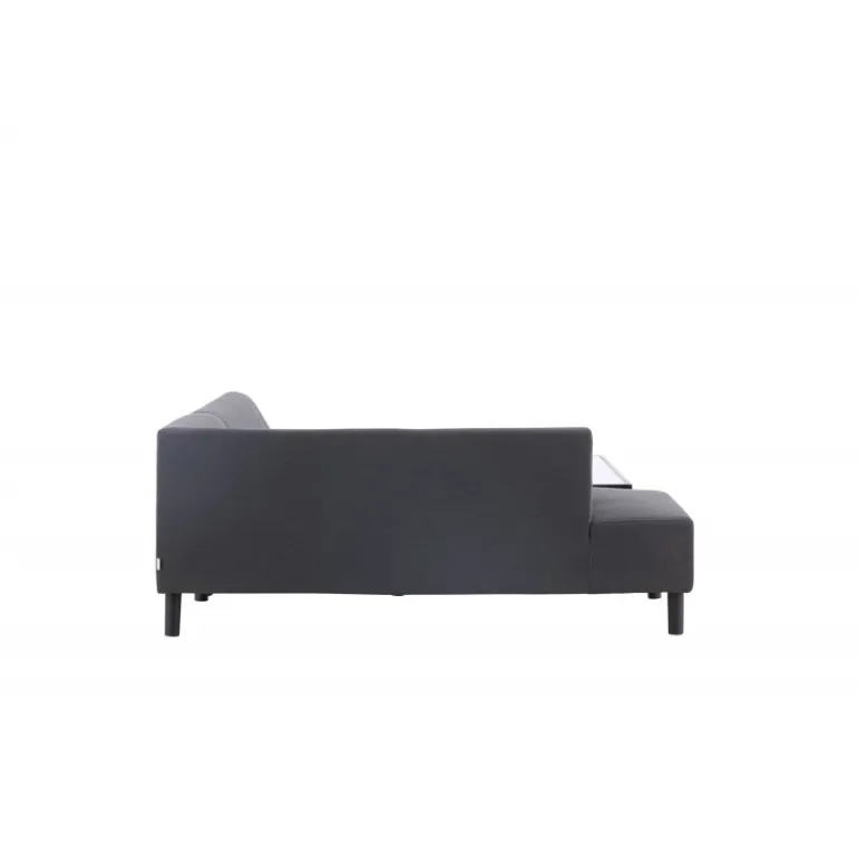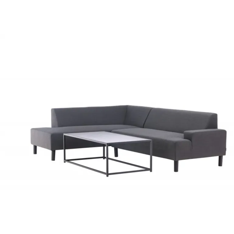 Mecka hjørnesofa er en komfortabel sofa i tidløst design. Det glatte stof og den store chaiselong gør, at du hurtigt kan finde ro. Et praktisk og stilfuldt bord følger også med sofaen. Saml dine naboer til en kop kaffe eller inviter dine venner til en hyggestund på sofaen. Sofaen er vandafvisende med quick dry-skum og akrylstof, der ikke falmer, og er derfor perfekt til terrassen. Dimensioner: Sofa: Dybde: 85 cm, Bredde: 180 cm, Højde: 70 cm | Bord: Bredde: 64,5 cm, Længde: 125 cm, Højde: 40 cm