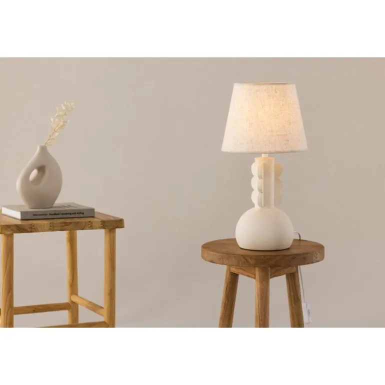 Med bordlampen Mellerud fra Wind får du en smuk indretningsdetalje! Bordlampen har en dekorativ fod i beige beton og en beige lampeskærm af hør. De bløde former og jordfarver skaber et hjemligt indtryk i rummet og løfter indretningsniveauet et par trin. Placer den på en bænk i gangen eller i stuen, eller hvorfor ikke i vinduet i soveværelset. Lampen passer i de fleste rum og bliver en smuk blikfang, uanset hvor den placeres.