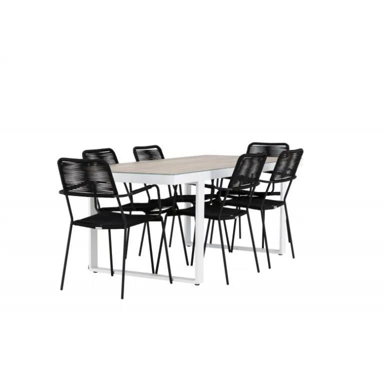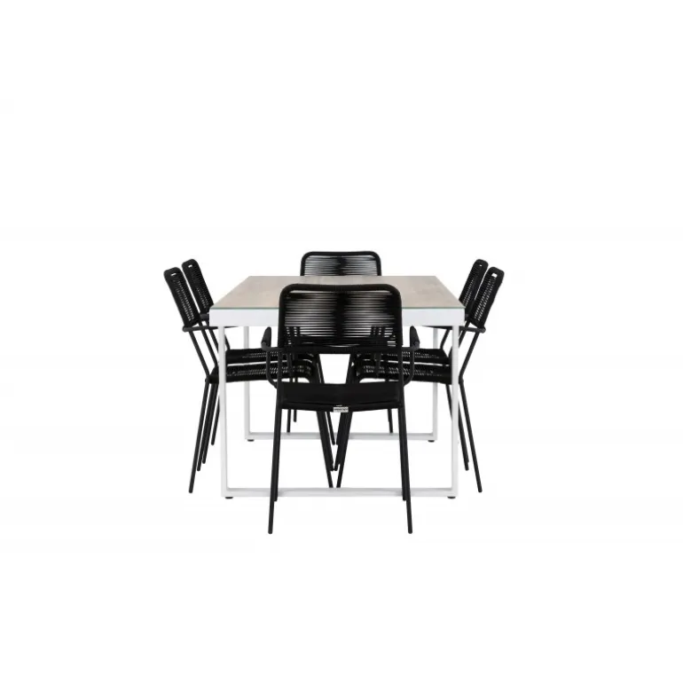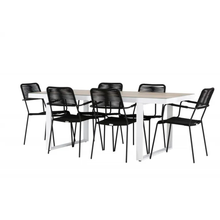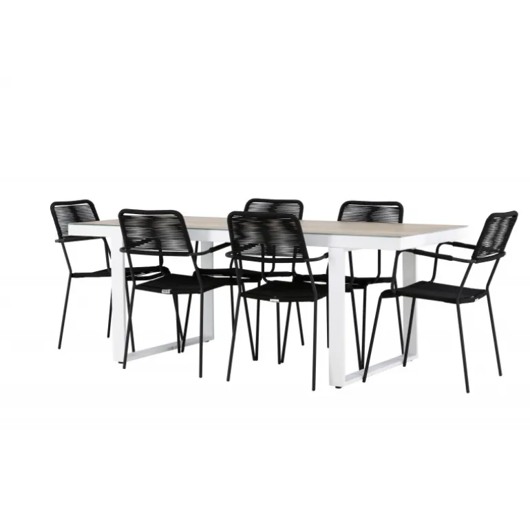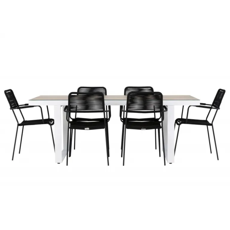 Opdag det perfekte Loungesæt – Havemøbelsæt til din udendørs plads med vores elegante Merlo bord og de stilfulde Lindos stole. Med sit moderne look og praktiske design er dette sæt en fremragende tilføjelse til din terrasse eller have. Merlo bordet er lavet af aluminium og har en elegant glasplade, der tilføjer et sofistikeret touch til din udendørs indretning. Den hvide farve bringer en følelse af friskhed og luksus til dit udendørs spiseområde. Lindos stolene er også lavet af aluminium og har en dyb sort farve, der giver en kontrasterende og moderne æstetik til dit udendørs miljø. Deres elegante design og komfortable sæder gør dem perfekte til afslappende måltider eller sociale sammenkomster udendørs. Dette Loungesæt – Havemøbelsæt kommer med seks komfortable stole, hvilket gør det ideelt til store familiemiddage eller festlige sammenkomster under åben himmel. Med Merlo og Lindos Loungesæt – Havemøbelsæt kan du skabe et indbydende og stilfuldt udendørs miljø, hvor du og dine gæster kan nyde vidunderlige øjeblikke til fulde.