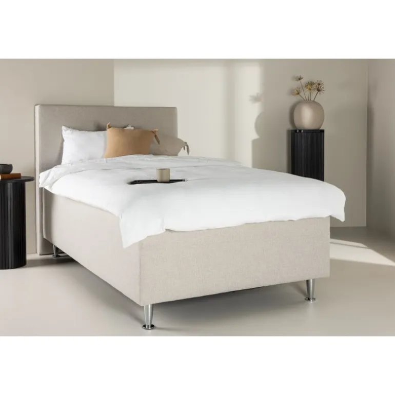 Oplev drømmesøvn og total afslapning med vores vidunderlige seng, Mesa! Mesa er ikke bare en seng; det er et sted for fornyelse og genopladning. Med sin rummelige bredde på 120 cm og faste støtte giver den dig optimal komfort for en nat fyldt med ro og drømme. Mesa har en neutral beige farve, der ikke kun tilføjer et strejf af elegance til dit soveværelse, men også skaber en øjeblikkelig følelse af fred og harmoni. Hovedgærdet er en praktisk og visuelt tiltalende detalje, der giver sengen karakter og gør den til et midtpunkt i rummet. Med sine plastikben får du ikke kun stabilitet, men også et moderne touch, der passer perfekt i dit hjem. Giv dig selv gaven af dyb og genopbyggende søvn med Mesa. Bestil din Mesa seng i dag og oplev den utrolige forskel en kvalitets seng kan gøre i dit liv. Hver nat er en mulighed for at vågne op fuld af energi og klar til at omfavne dagen med glæde og vitalitet.