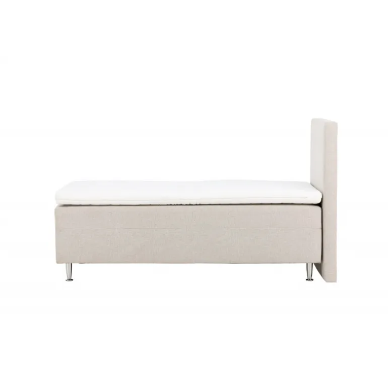 Velkommen til din personlige oase af ro og komfort med vores vidunderlige seng, Mesa! Mesa er ikke blot en seng; det er en omfavnelse af afslapning og en invitation til drømmende søvn. Med sit design og det beige stof skaber Mesa den perfekte atmosfære for en nat fuld af komfort og ro. Mesa er en 90 cm bred rammeseng beklædt med et blødt og smidigt beige stof. De beige nuancer giver en følelse af ro og fred til dit soveværelse, hvilket er præcis, hvad du har brug for at slappe af og slippe hverdagens stress. Stoffet føles som en kærlig omfavnelse, når du kryber i seng. Sengen står fast på plastikben, hvilket giver den stabilitet og holdbarhed. Du kan føle dig tryg og sikker, når du lægger dig til rette i Mesa hver nat. Mesa har en fast fasthed, der tilbyder en balanceret følelse af støtte og komfort for en god nats søvn. Den høje sengegavl er en oase for dig at læne dig imod, når du vil nyde en bog, en film eller blot slappe af i sengen. Pynt din Mesa med bløde puder for at skabe den ultimative hyggelige atmosfære i dit soveværelse. Når du kryber i seng, kan du være sikker på, at du vil opleve en fredfyldt nattesøvn. Mesa er mere end blot en seng; det er en invitation til at omfavne skønheden ved søvn og nyde hvert øjeblik af afslapning. Bestil din Mesa seng i dag og skab din egen lille oase af ro og velvære i dit soveværelse.